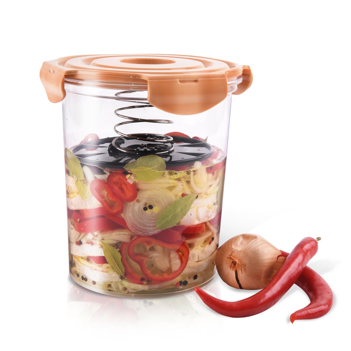 Má objem 4 l. Víčko s nerezovou pružinou umožňuje stlačení potravin, čímž snižuje spotřebu marinády nebo oleje a napomáhá zvýraznit jejich chuť, zejména sýry se lépe proleží a v oleji se zakonzervují do doby, než bude ten správný čas k jejich konzumaci.