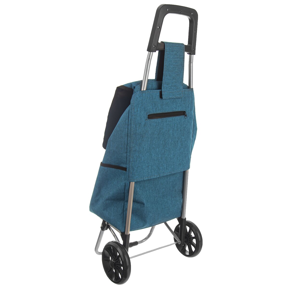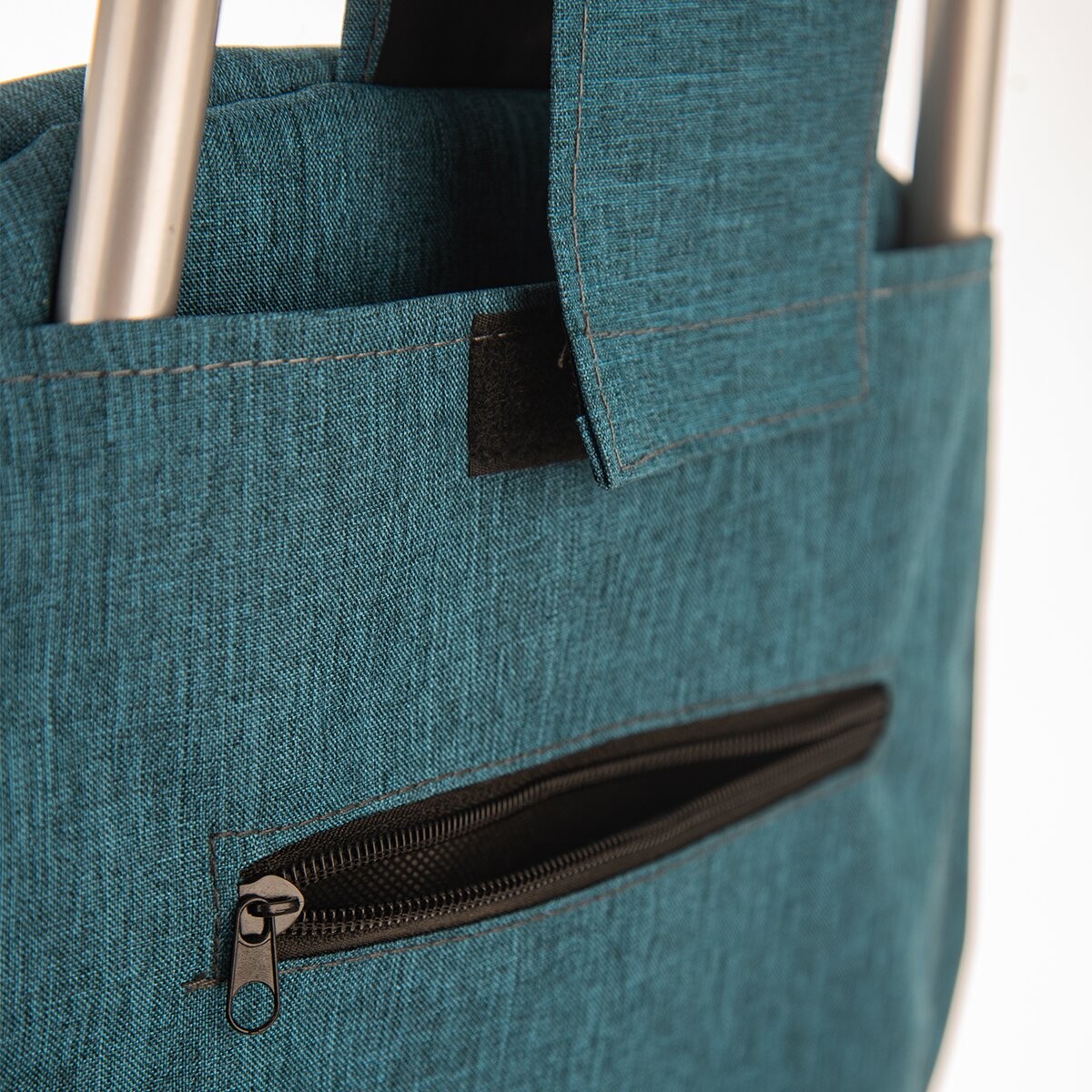Kód produktu 731418Nákupní taška v petrolejové barvě s lehkou kovovou konstrukcí a kolečky, nosností 30 kg a menší kapsou na zip usnadní nákupy a převážení různých předmětů.