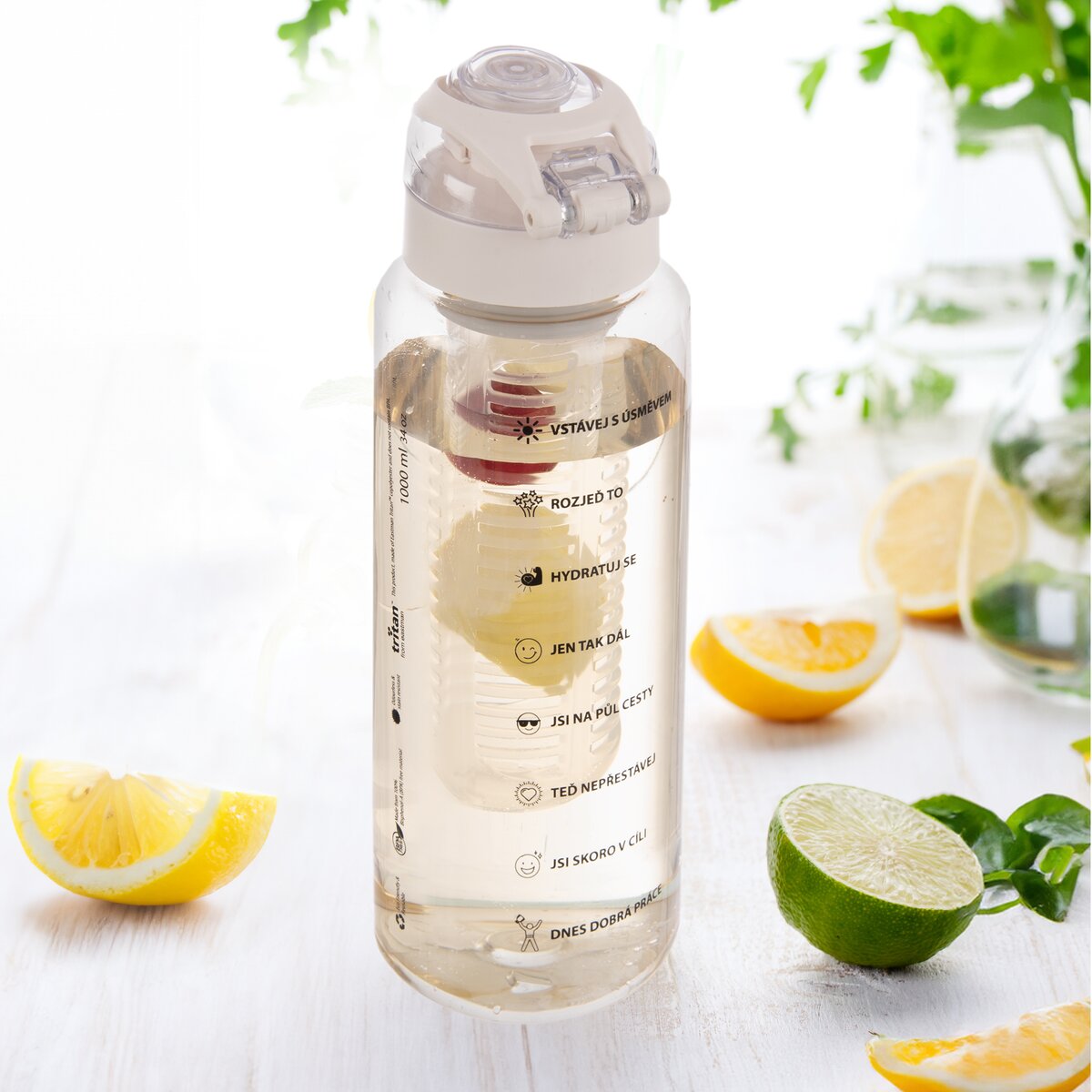 Více informacíPři fyzické aktivitě, v práci, ve škole i na výletě snadno udržíte pitný režim. Stačí mít po ruce tritanovou láhev s ryskami na zadní straně, která má moderní design. Stupnice udává množství vypitých tekutin, povzbudí vás k intenzivnějšímu pití. Hodí se na studené i teplé nápoje.