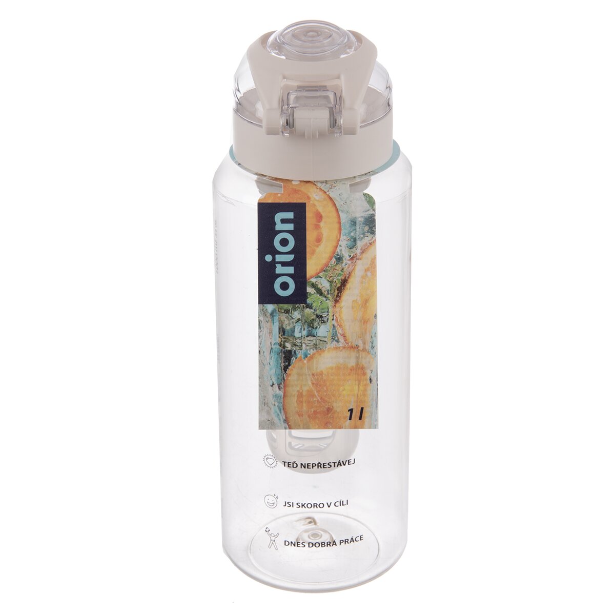 Kód produktu 128708Transparentní tritanová láhev LOOP o objemu 1 l je opatřena praktickým víčkem s odklápěcím pítkem a děrovaným vkladem v podobě infuséru. Ten lze po otevření naplnit citrusy, bylinkami, ovocem či okurkou a vložit do nápoje, který ochutí.