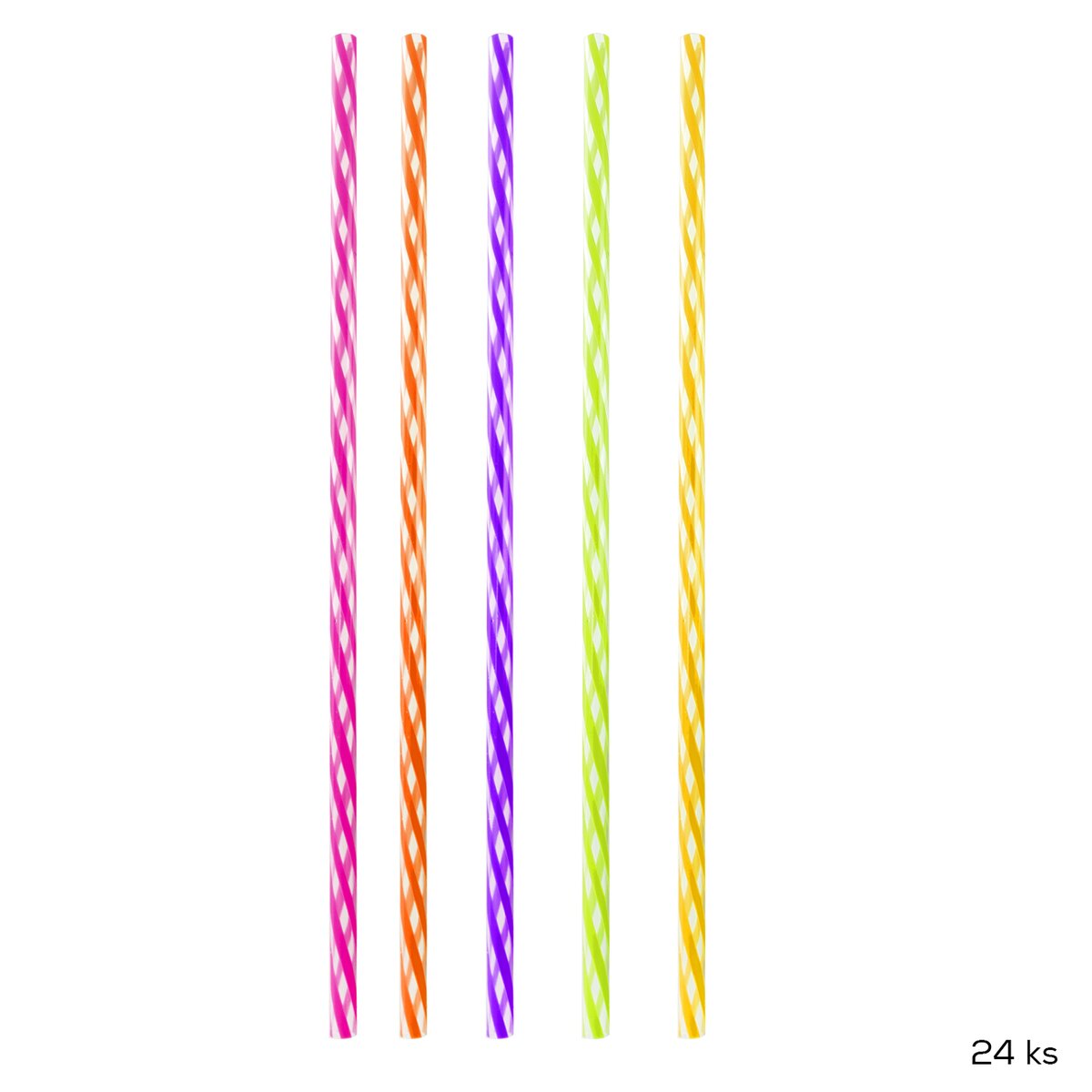 Brčko nápojové. Materiál: plast. Mix barev. Sada 24 ks. Rozměry: pr. 0,7 cm, d. 28 cm.