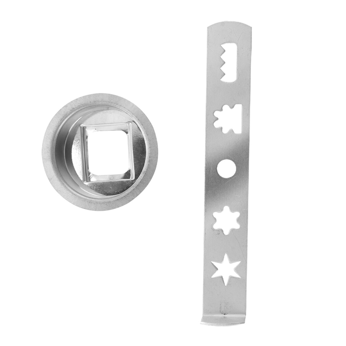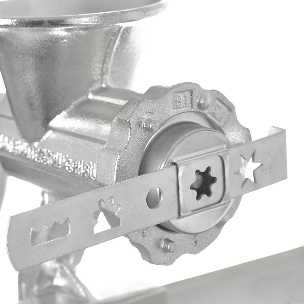 Kód produktu 131710Nástavec z pocínovaného plechu snadno a rychle vytvaruje potřebné tvary sušenek. Upevněním na strojek na maso č.8 vytvoří až pět různých tvarů lineckého strojkového cukroví.