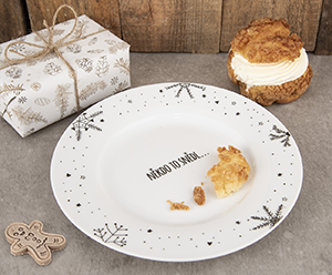 - velké hrnky s decentním potiskem, který už už naznačuje, že Vánoce jsou tu za pár týdnů, se hodí k přípravě a servírování pořádného čaje. Jak se ochladí a začne být sychravo, bude se bylinkový čaj určitě hodit. K tomu kousek bábovky na zajímavých talířích s jemnými vločkami.