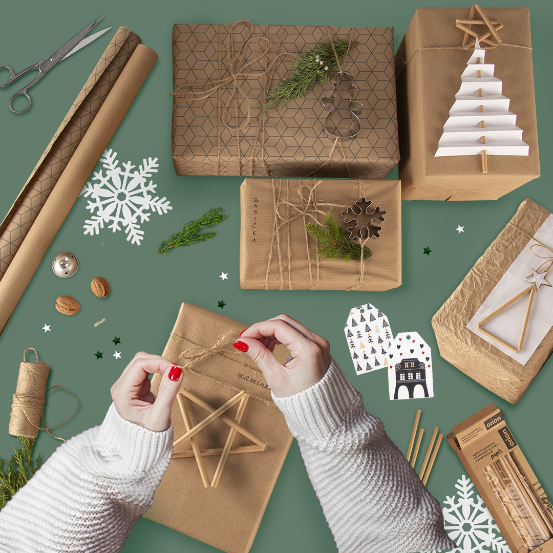 U balení do balicího papíru stačí ustříhnout správný rozměr, nenápadně papír přilepit páskou a sladit jej s hezkou mašlí. Kdo dává přednost rustikálně zabaleným dárkům, pomůže si při vázání režným provázkem, případně papírovými brčky, ze kterých lze vyrobit pěknou hvězdičku. A finální tečku dodá originální jmenovka na dárky, tyto visačky najdete zde >>