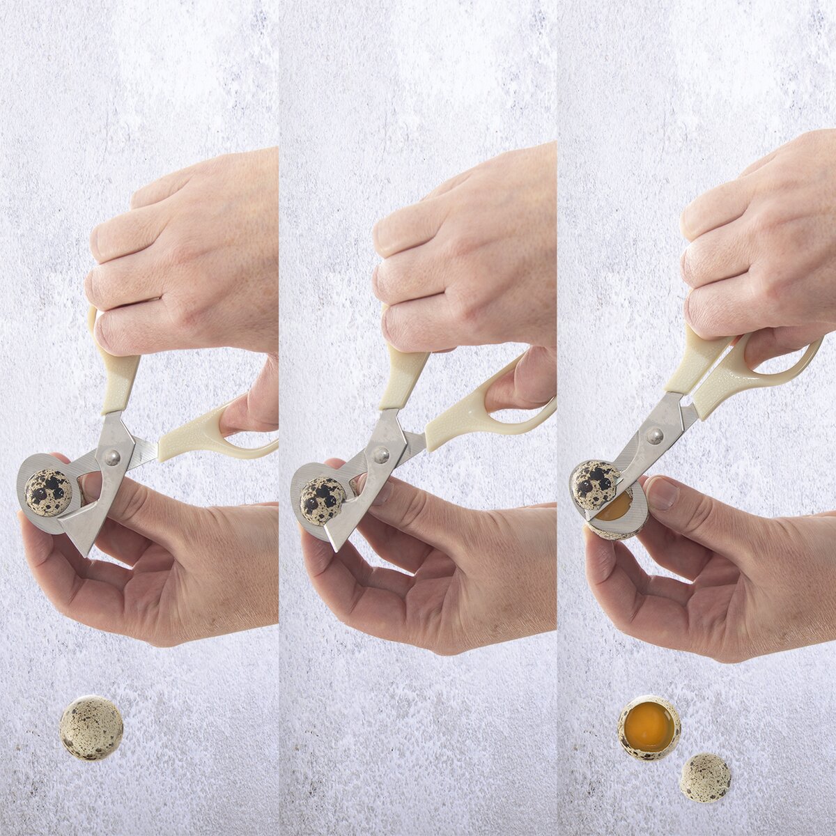 Více informacíVyzkoušeli jste už někdy křepelčí vajíčka? Jsou velmi zdravá. Pokud je chcete připravit na způsob volského oka, není jednoduché se do nich dostat. Prsty nejsou v poměru k velikosti vajíček tím pravým nástrojem. Mnohem lépe poslouží speciální nůžky, které skořápku velice precizně rozdělí pomocí trojúhelníkového hrotu. Odkrojí velmi snadno, přesně a čistě horní špičku a vy můžete vajíčko krásně vylít na pánev.