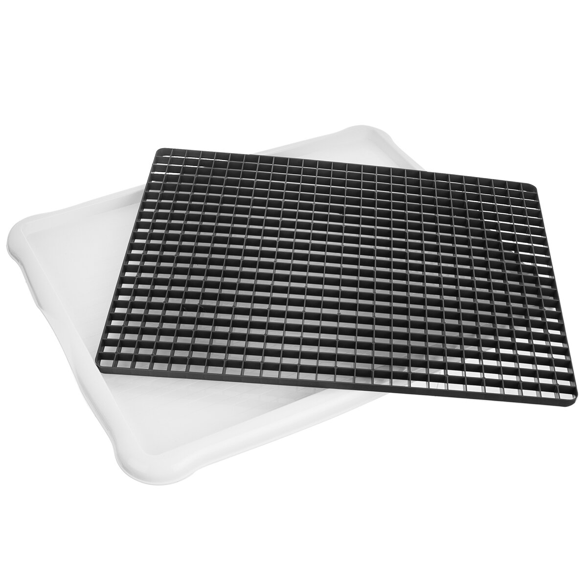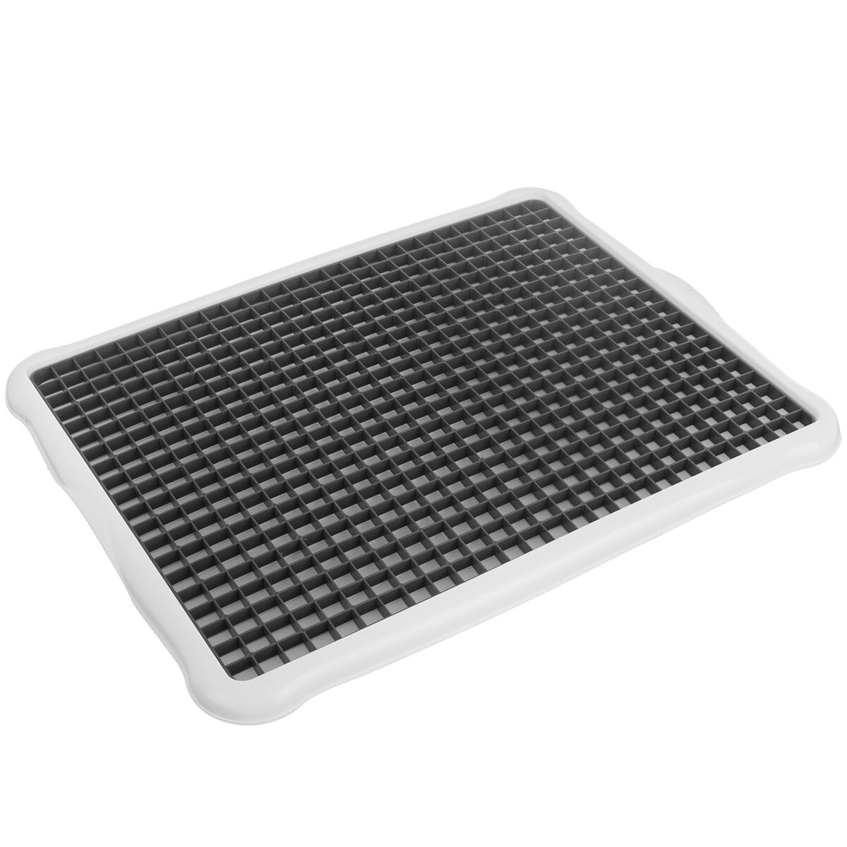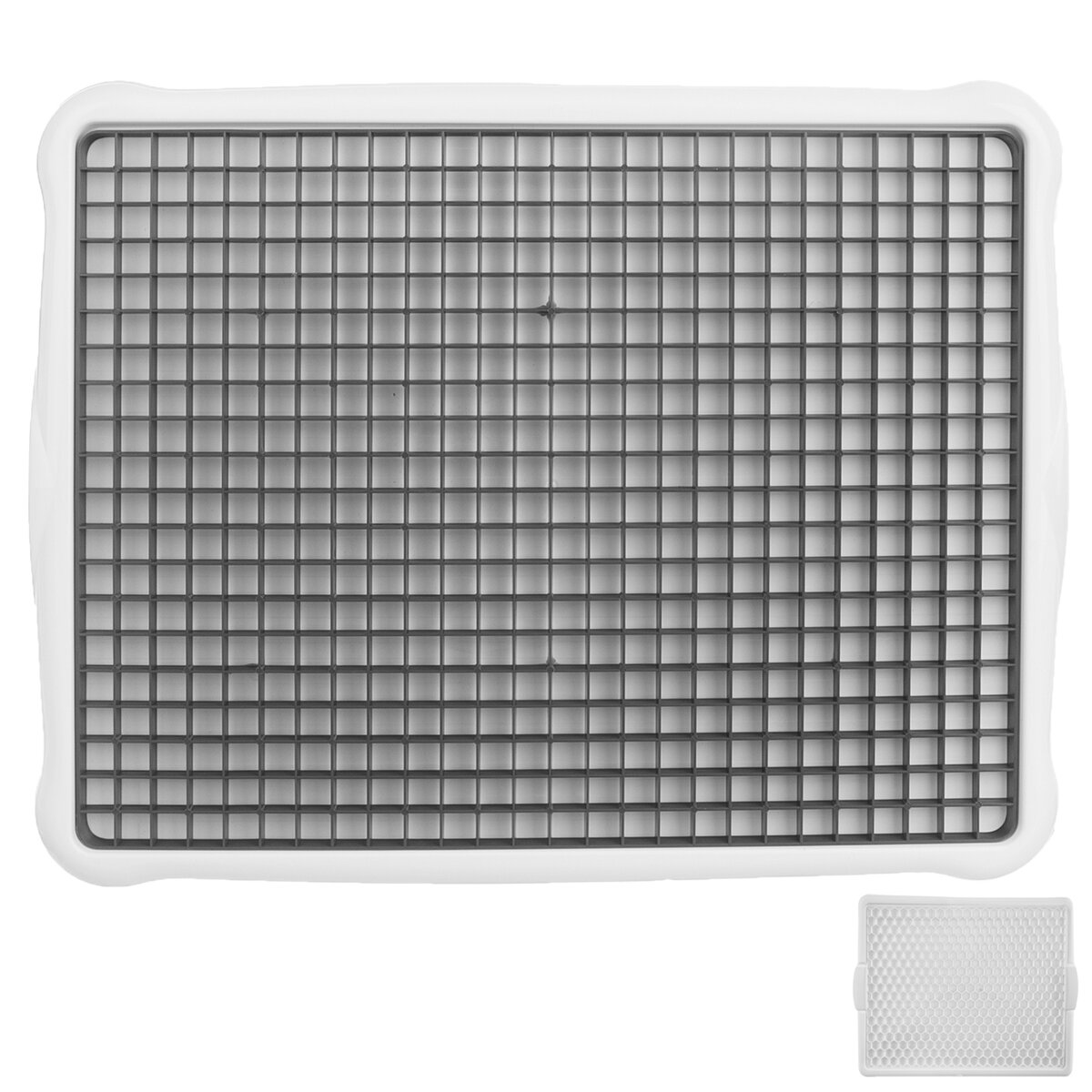 Kód produktu 150693Bílá odkapávací podložka na nádobí o rozměrech 42,3×33,2×1,6 cm s vnitřní plastovou mřížkou.