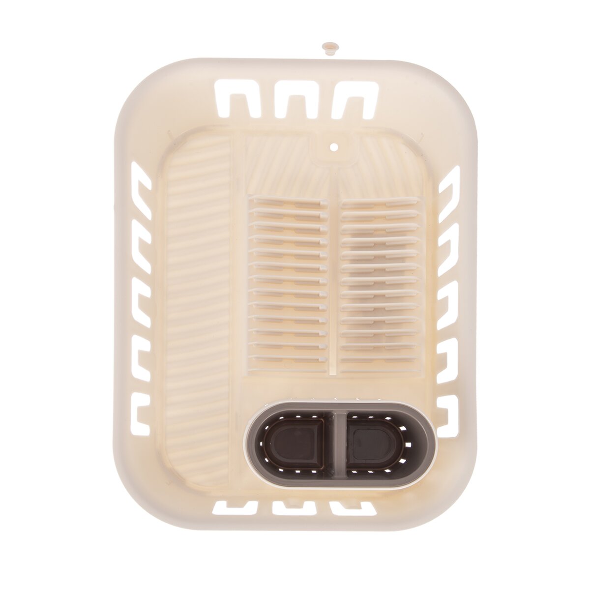 Jeho promyšlený design zajišťuje efektivní odvádění vody díky důmyslnému systému drážek v části základny, která je vybavena výpustí se zátkou. Díky tomuto řešení odkapávač nevyžaduje samostatný podnos, protože voda je odváděna přímo mimo něj. Stabilitu na kuchyňské lince zajišťují protiskluzové prvky z TPE na spodní straně, které brání nechtěnému pohybu během používání. Tento odkapávač z plastu PP tak spojuje funkčnost, hygienu a praktičnost v elegantním provedení.