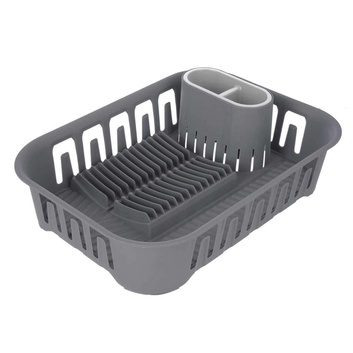 Kód produktu 155219Šedý plastový odkapávač o rozměru 39x28,5x11 cm je určen k odkládání, okapání umytého nádobí. Opatřen částí na příbory a plochou k odložení talířů a dalšího nádobí, je vybaven výpustí se zátkou.