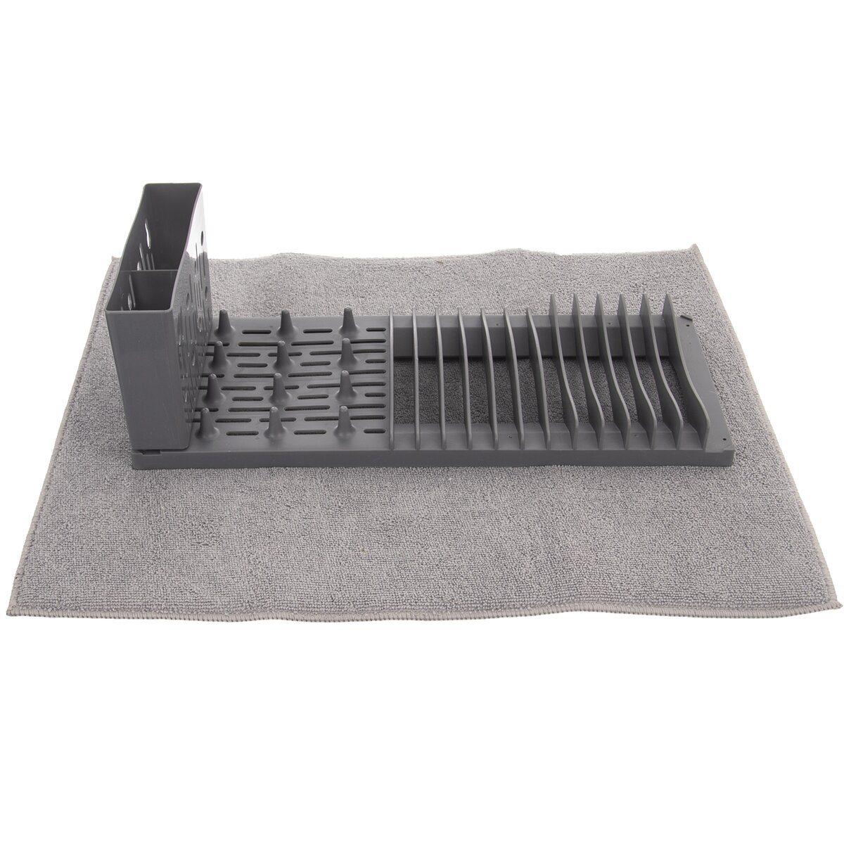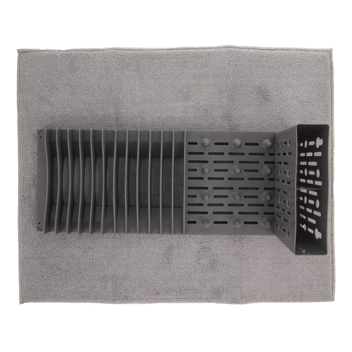 Kód produktu 150692Plastový odkapávač na nádobí o rozměrech 40×16×13 cm s velmi savou podložkou o rozměrech 50×40 cm z mikrovlákna.