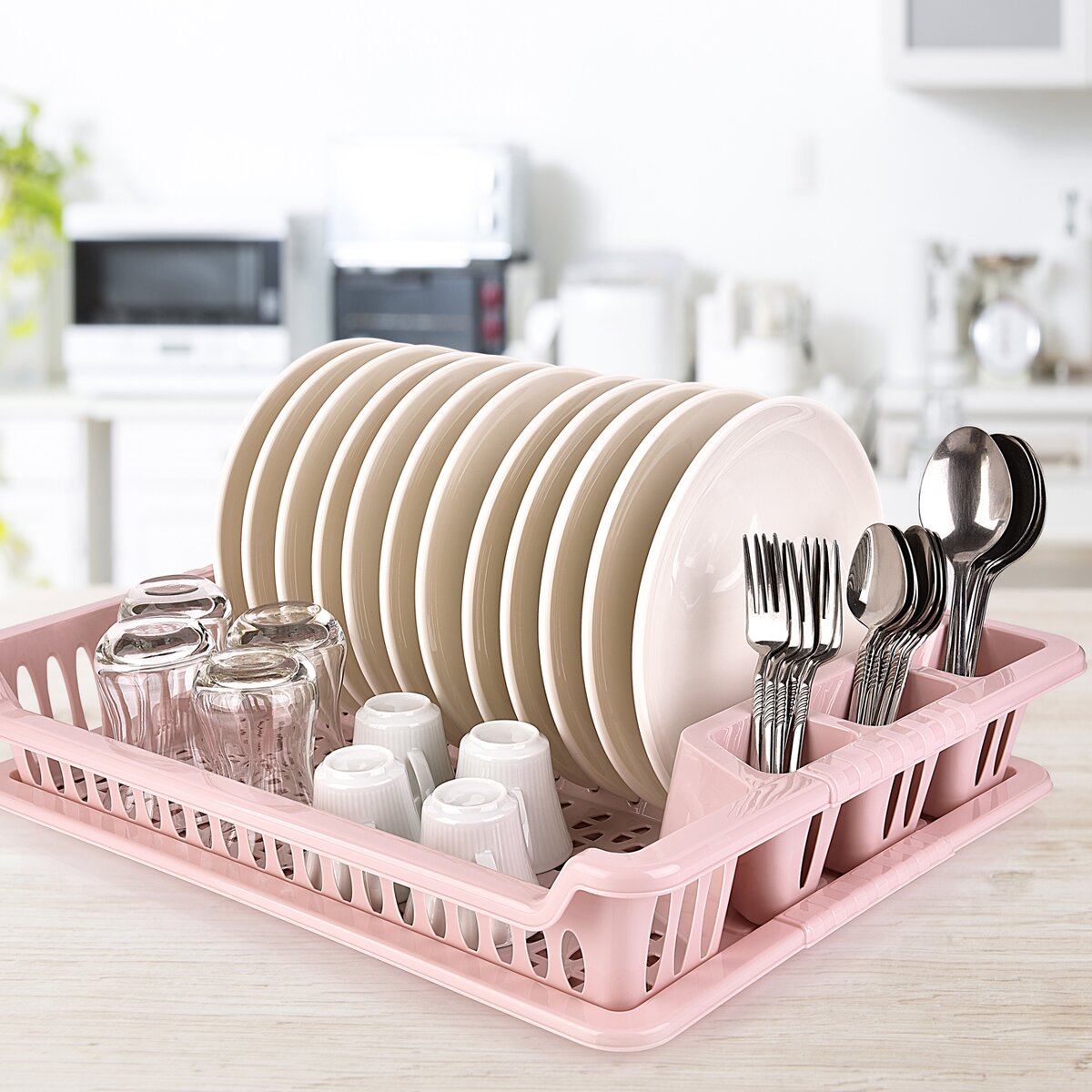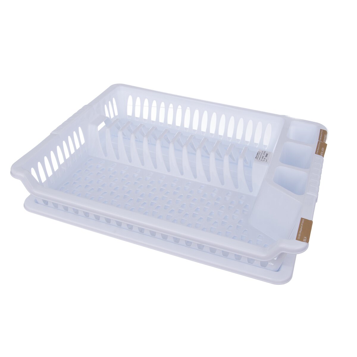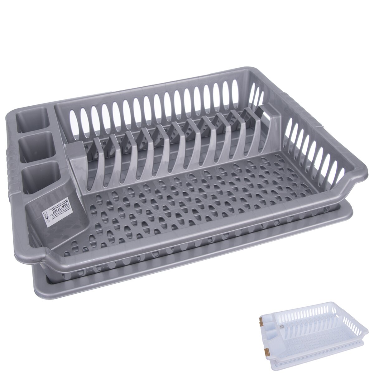 Kód produktu 150668Odkapávač na nádobí s tácem. Členěný - sekce na příbory, talíře a na ostatní nádobí. Materiál: plast. Barevné varianty. Rozměry: 45x37x8,5 cm.