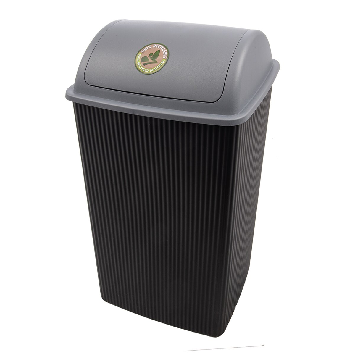 Kód produktu 731727Černý koš na odpadky o objemu 38 l s mechanismem kolíbky pro jednoduché otevírání a vhazování odpadků. Je vyroben z recyklovaného plastu.