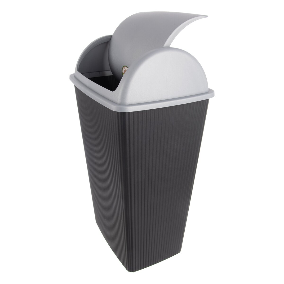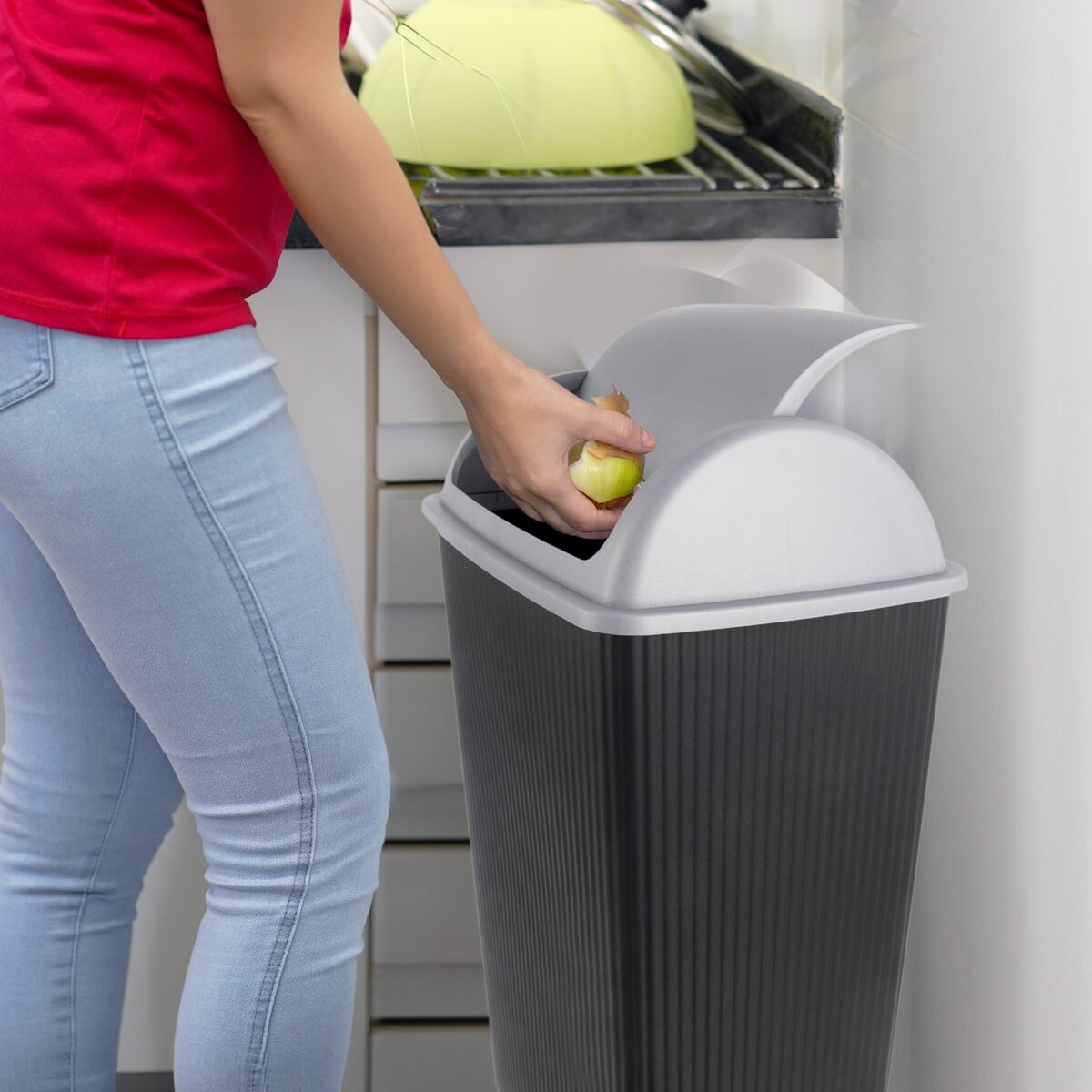 Díky otevírání ve víku ve stylu kolíbka nepotřebuje tolik místa v kuchyni. Víko se dá navíc odklopit, což usnadňuje následnou manipulaci s odpadky, případně vložení sáčků do odpadkového koše.