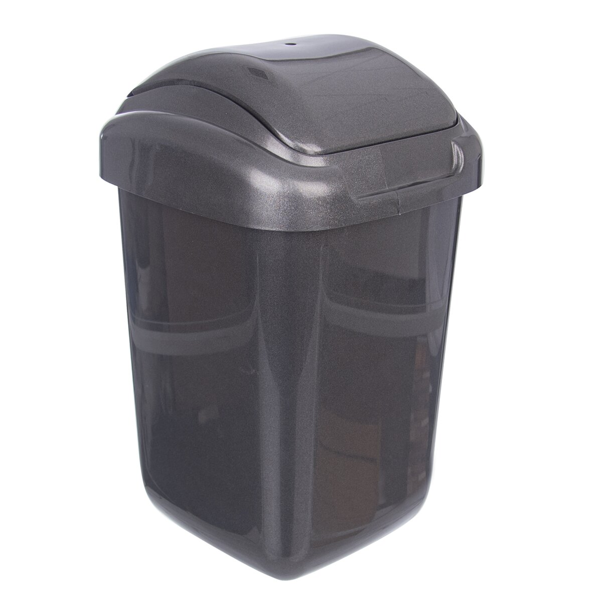Kód produktu 731350Černý plastový koš na odpadky o objemu 50 l s mechanismem otvírání kolíbka.