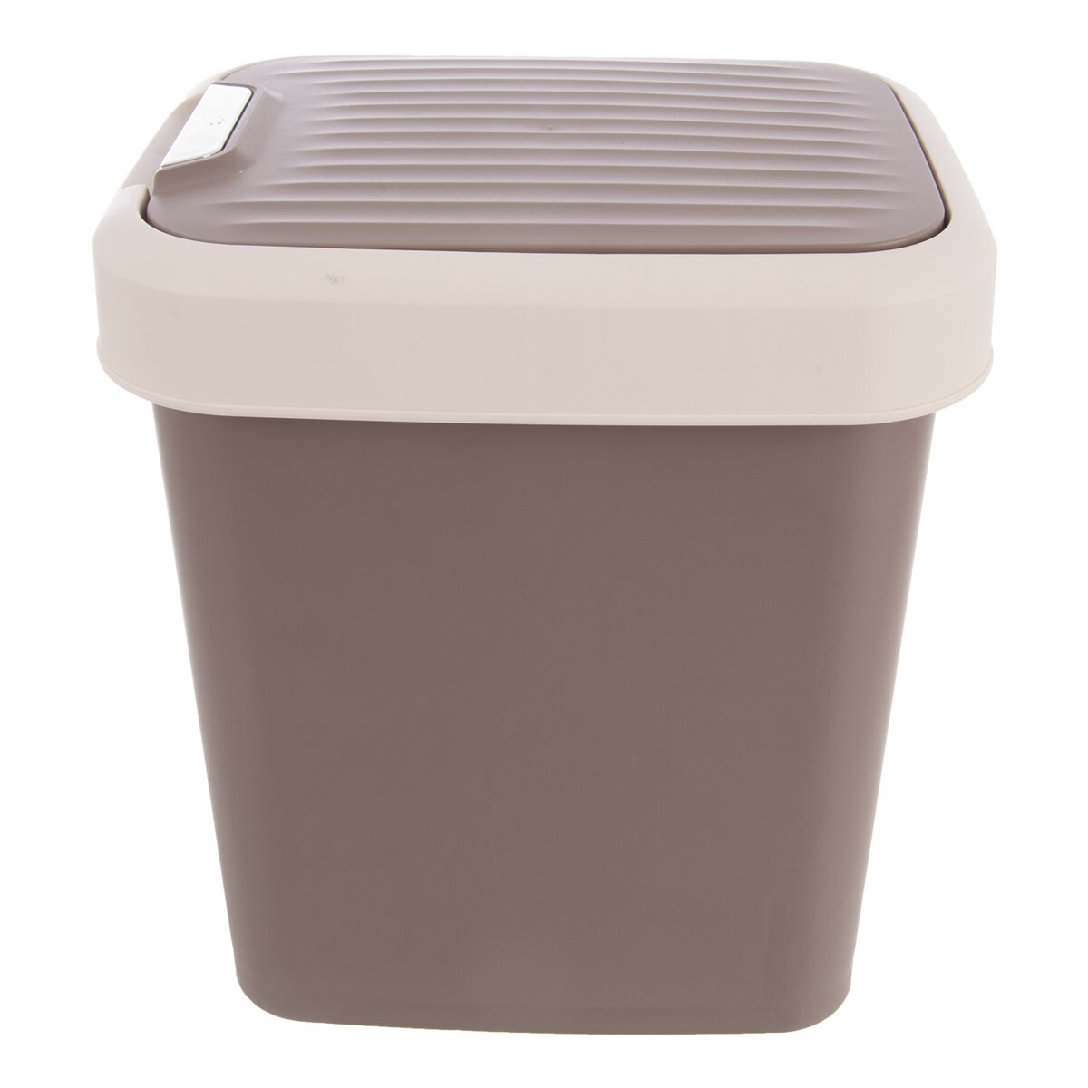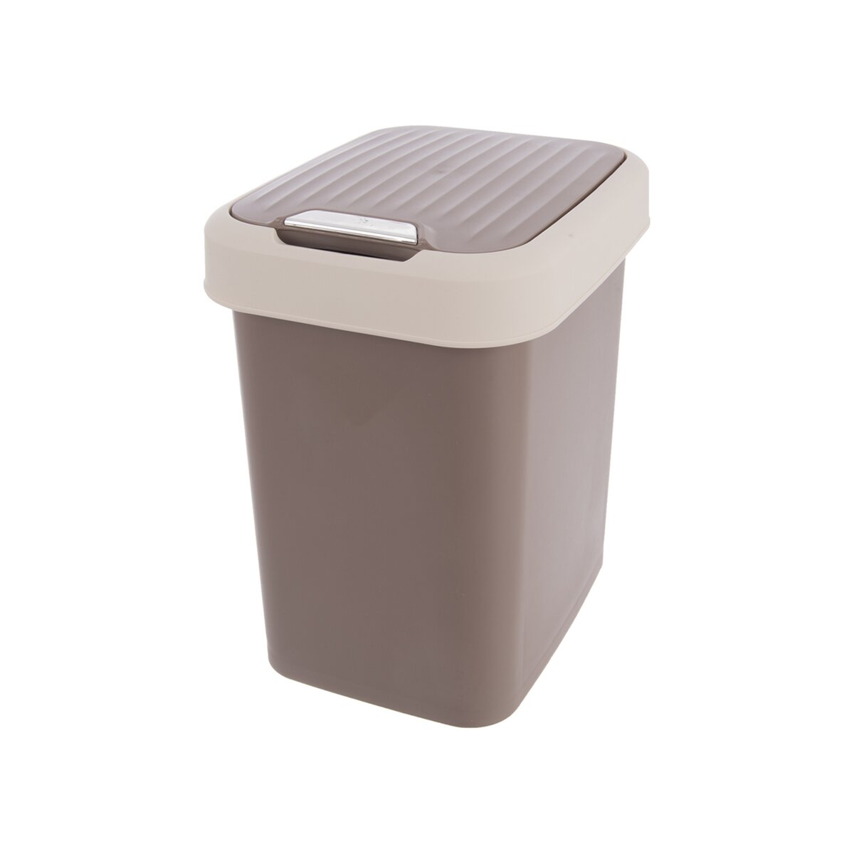 Kód produktu 731732Hnědo-béžový odpadkový koš o objemu 12 l má výklopné víko, které lze otvírat třemi způsoby.