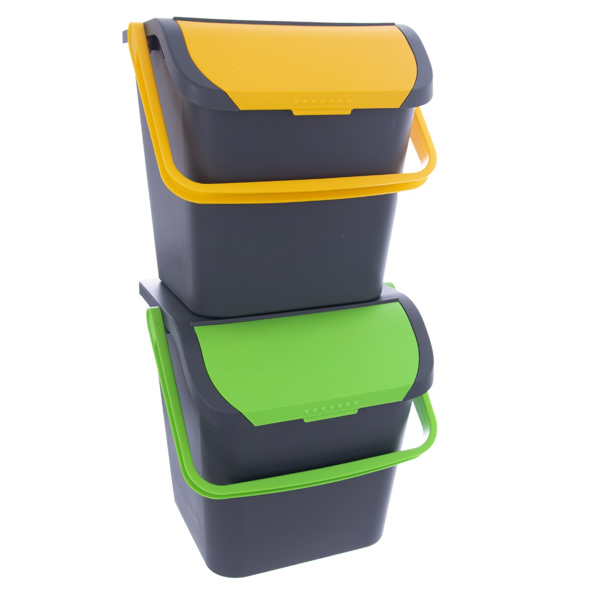 Odpadkový koš je základem každé domácnosti. Tento plastový koš má praktické ucho na přenášení a žluté víko - určen pro třídění plastu. Pořídíte-li si více kusů, můžete je využít i jako soupravu na tříděný odpad. Koše lze prakticky stohovat na sebe, takže nezaberou tolik místa na podlaze.