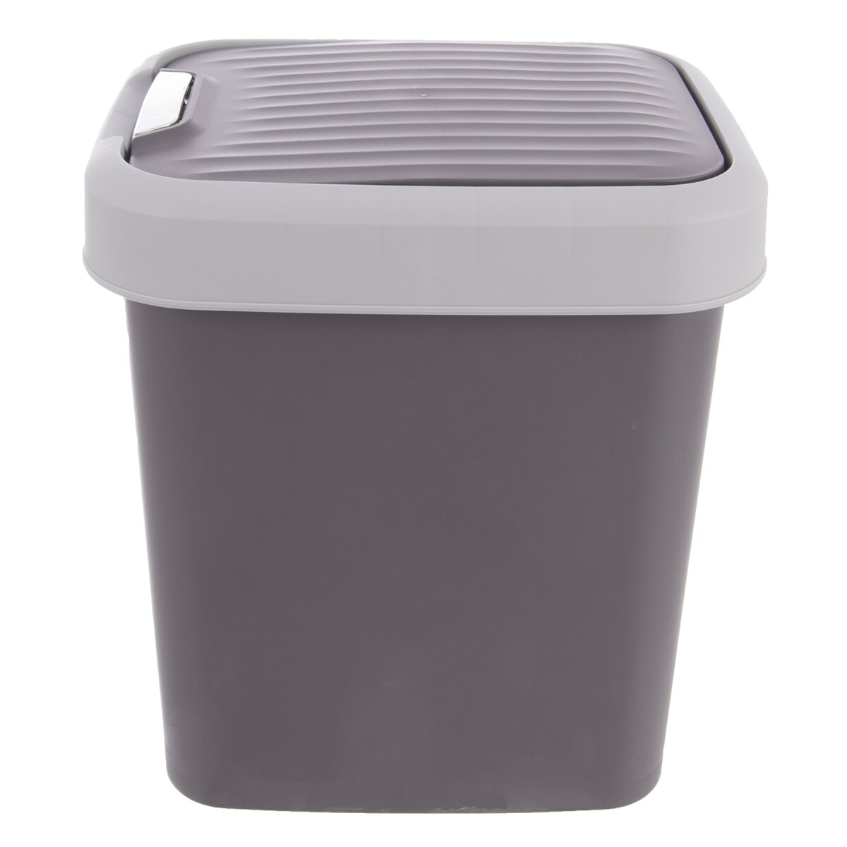 Kód produktu 731733Šedý odpadkový koš o objemu 12 l má výklopné víko, které lze otvírat třemi způsoby.