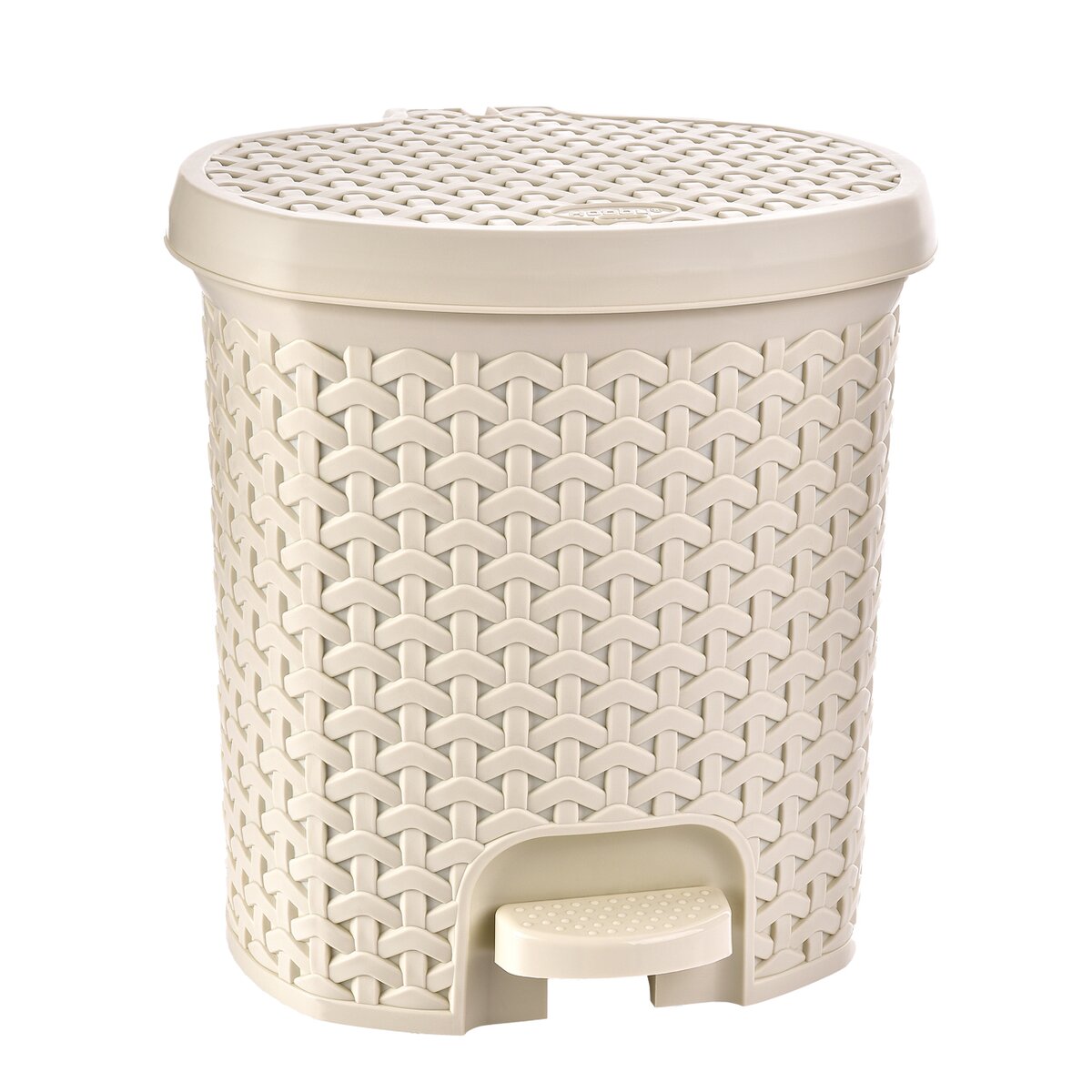 Koš odpadkový s pedálem. Oválný. Materiál: plast. Imitace ratanu. Rozměry: objem 21 l, 34x34x40 cm.