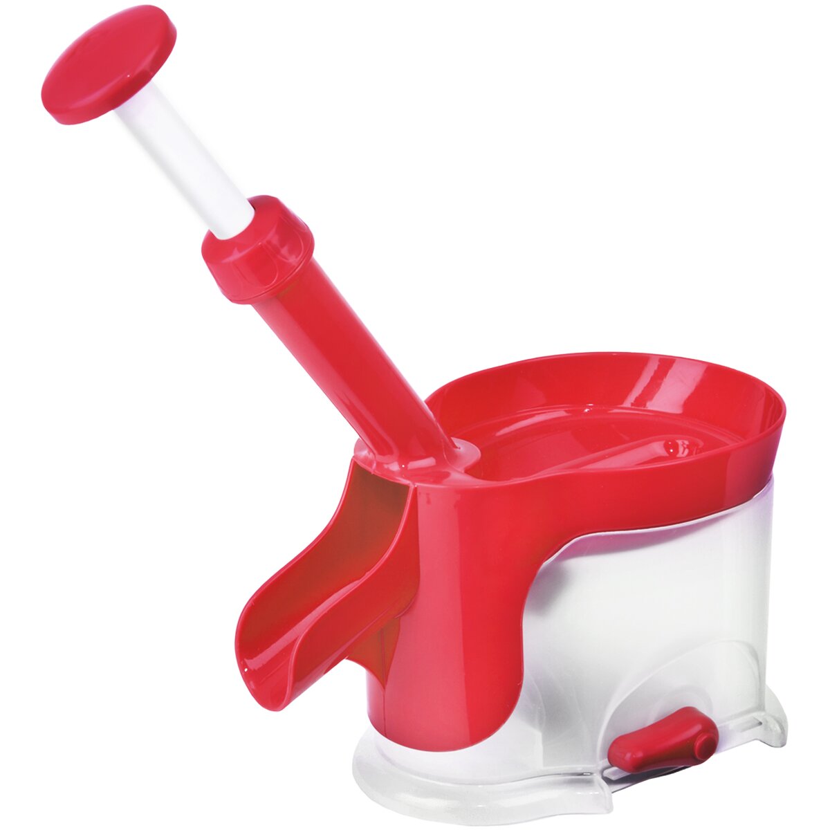 Odpeckovač třešní a višní je snadno vypeckuje. Ovoce stačí postupně vsypat do velké horní násypky, pomocí pružinového systému v rukojeti je pecka protlačena do zásobníku. Odpeckované ovoce pak vypadne mimo strojek do jakékoliv připravené nádoby. Vyroben z plastu PP.