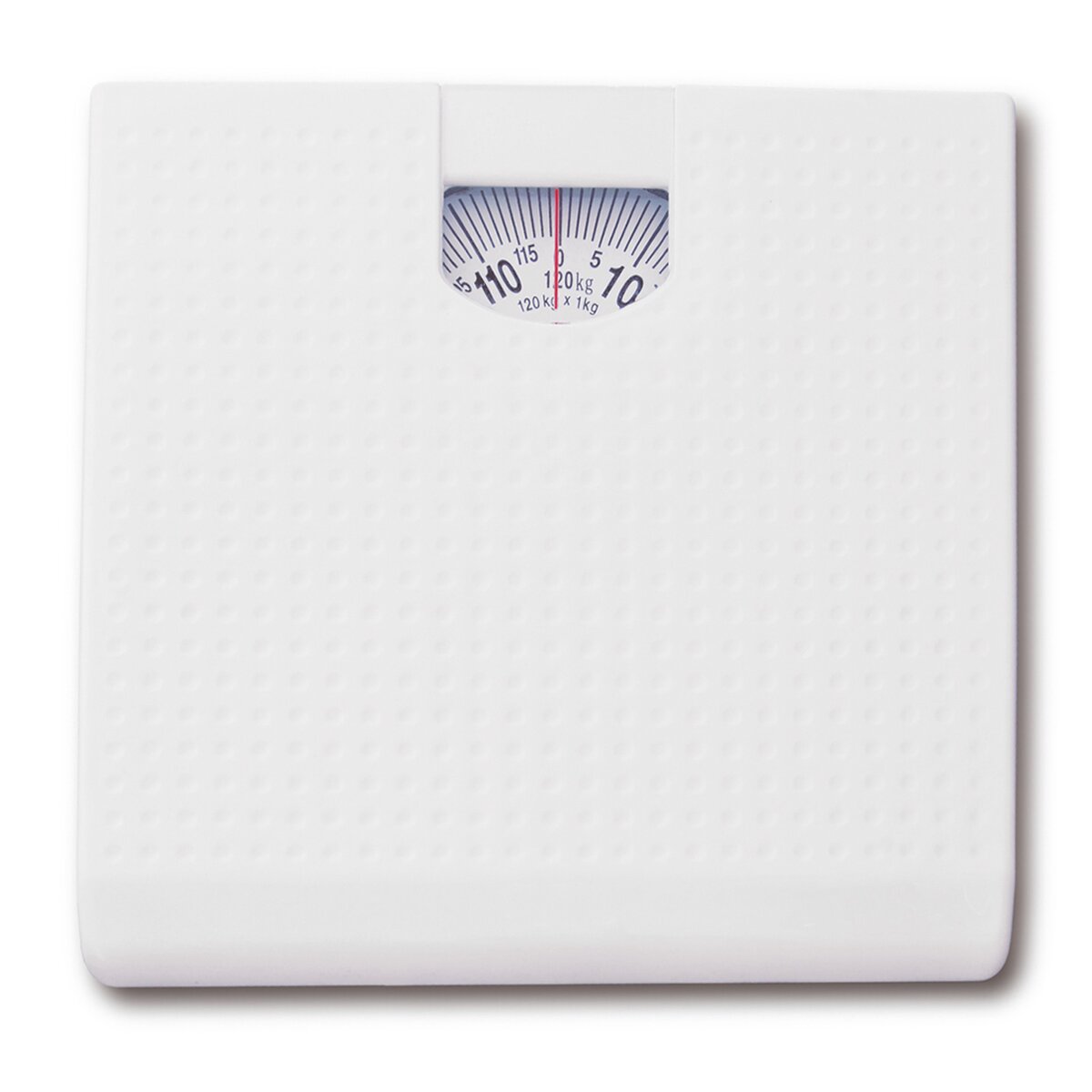 Mechanická osobní váha s nosností 120 kg je doplněna o přehledný, dobře čitelný číselník po 1 kg, kdy aktuální váhu zjistíte díky červené rysce.