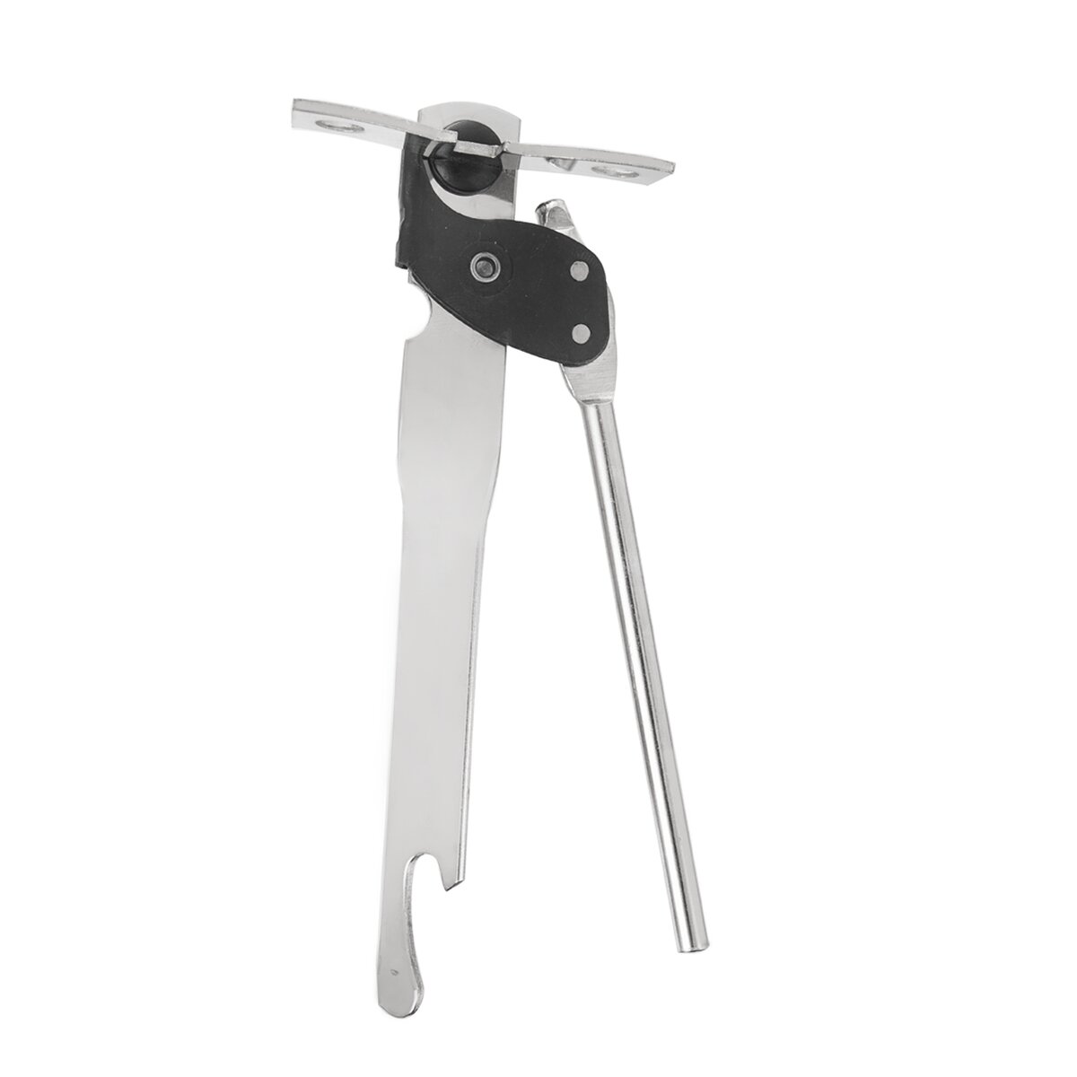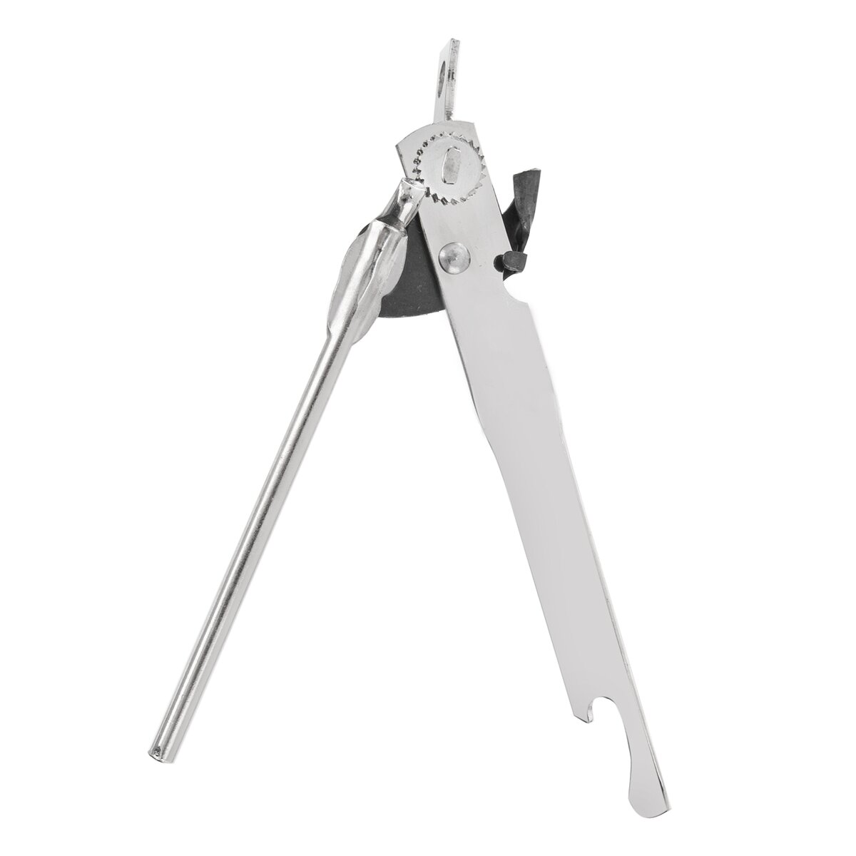 Není tak potřeba žádné větší síly. Na rukojeti je navíc umístěn otvírák korunkových uzávěrů. Kromě konzervy si tak můžete otevřít i láhev piva nebo coly.