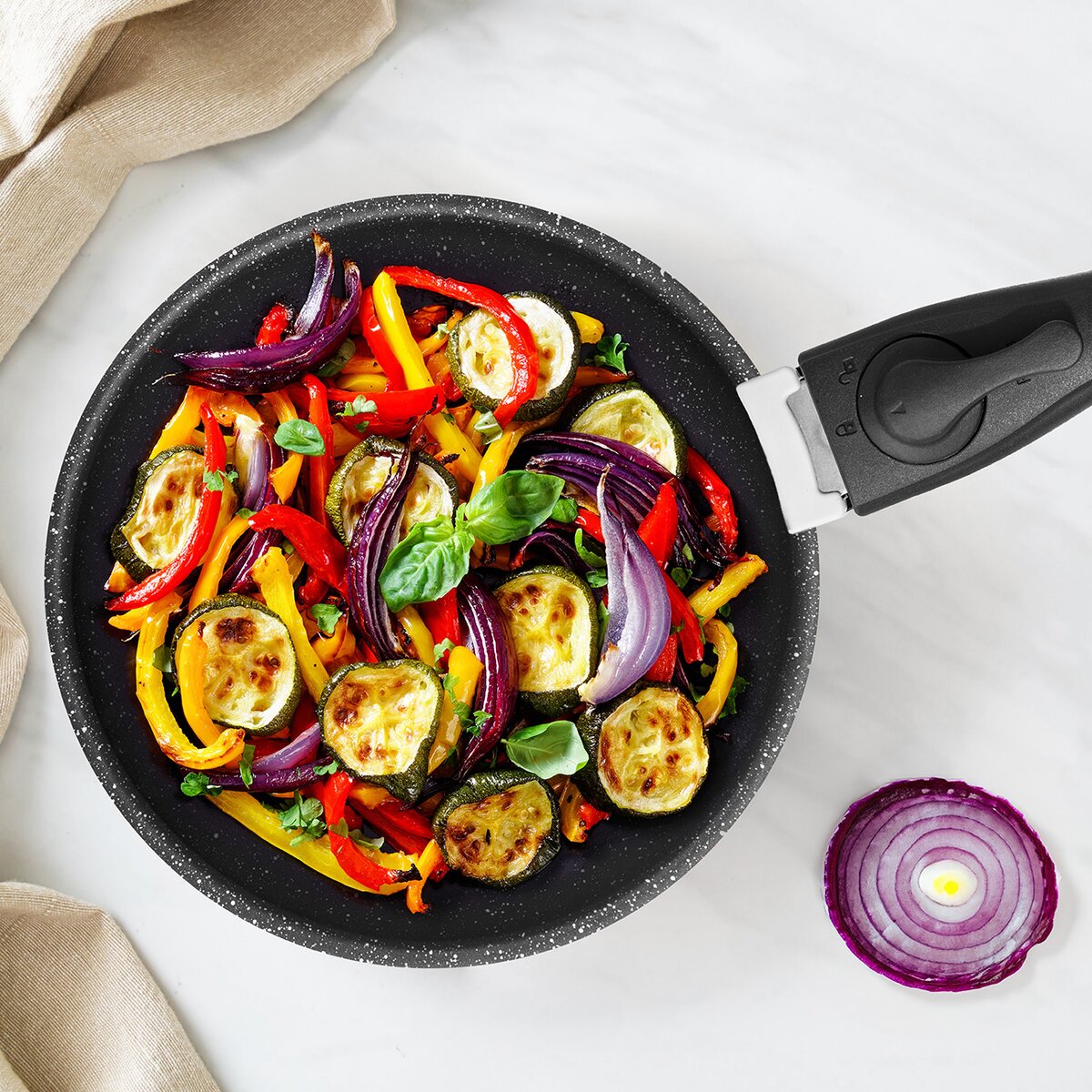 - možnost vložit pánev do trouby, ledničky, aniž by rukojeť překážela