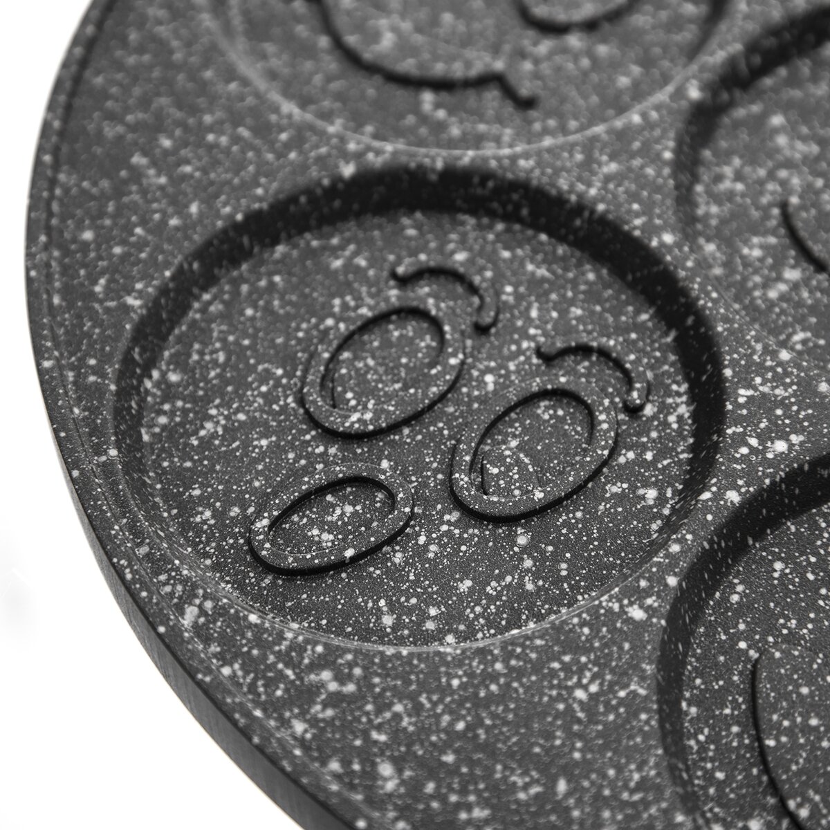 Kód produktu 112934Nepřilnavá pánev GRANDE s reliéfem smajlíků se sedmi sekcemi na volská oka i lívance. Vhodná na všechny typy spotřebičů včetně indukce.