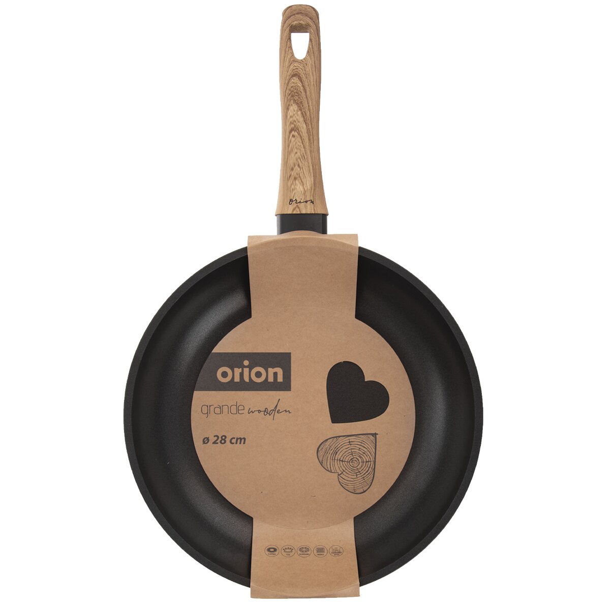 Kód produktu 112995Kvalitní designová pánev GRANDE WOODEN pr. 28 cm s nepřilnavým povrchem vhodná na všechny typy sporáků včetně indukce i do myčky.