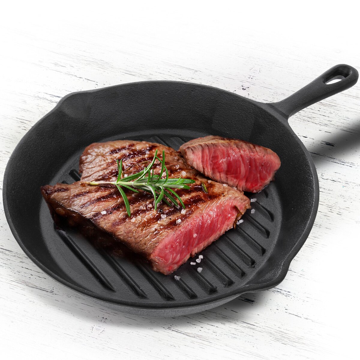 Kód produktu 112987Masivní litinová grilovací pánev průměru 24 cm, s typickou žebrovanou strukturou, pro intenzivní i pozvolné opékání steaků, zeleniny a dalších oblíbených pokrmů na všech typech sporáků, v troubě i na grilu.