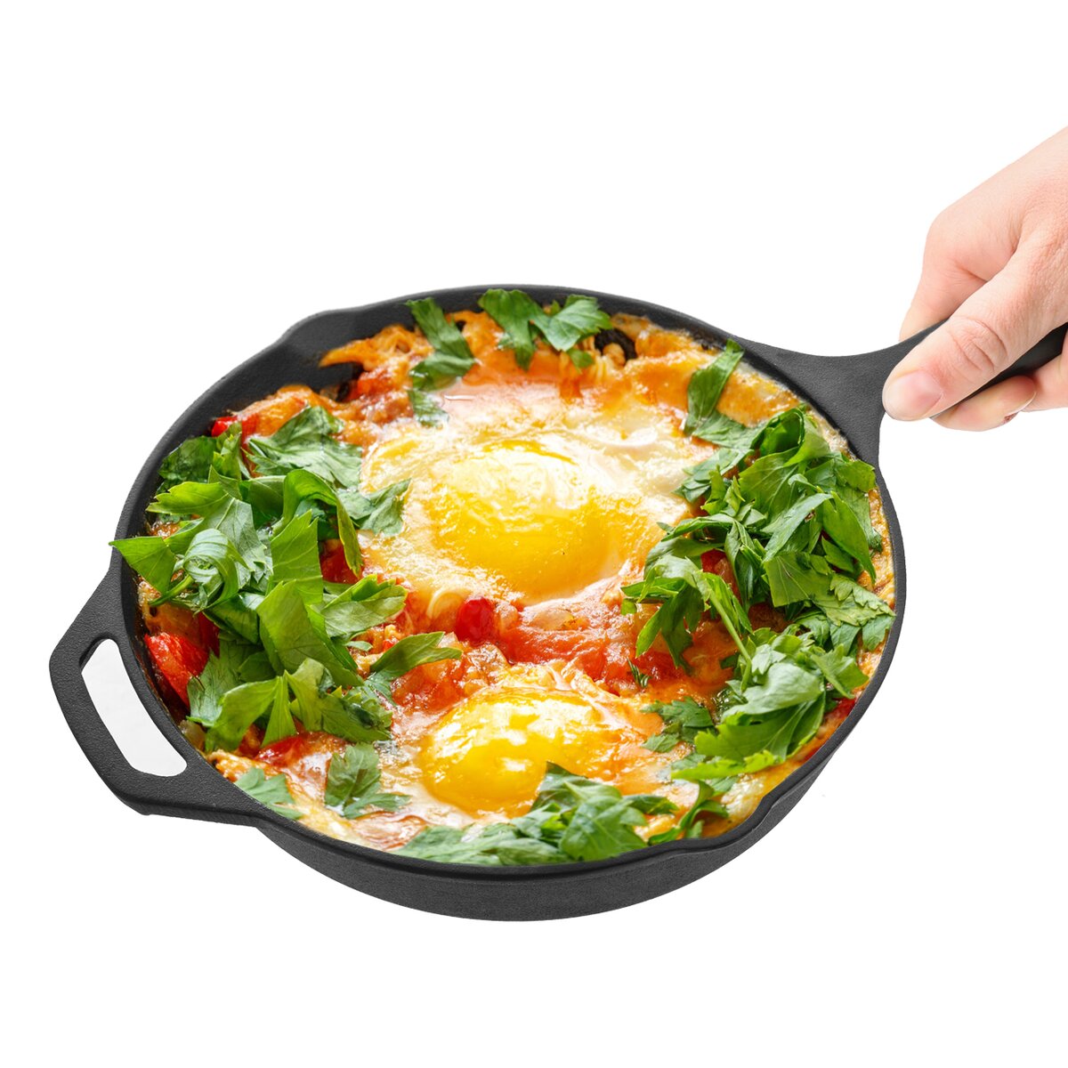 Pánev z litiny průměru 25 cm Vám pomůže při přípravě chutných pokrmů z masa, zeleniny i brambor. Po postupném zahřátí snese i vysoké teploty, maso se i na menším množství tuku rychle zatáhne a šťáva tak zůstane pěkně uvnitř. Má dvě výlevky, takže výpek, redukovanou šťávu i omáčku lze snadno slít.