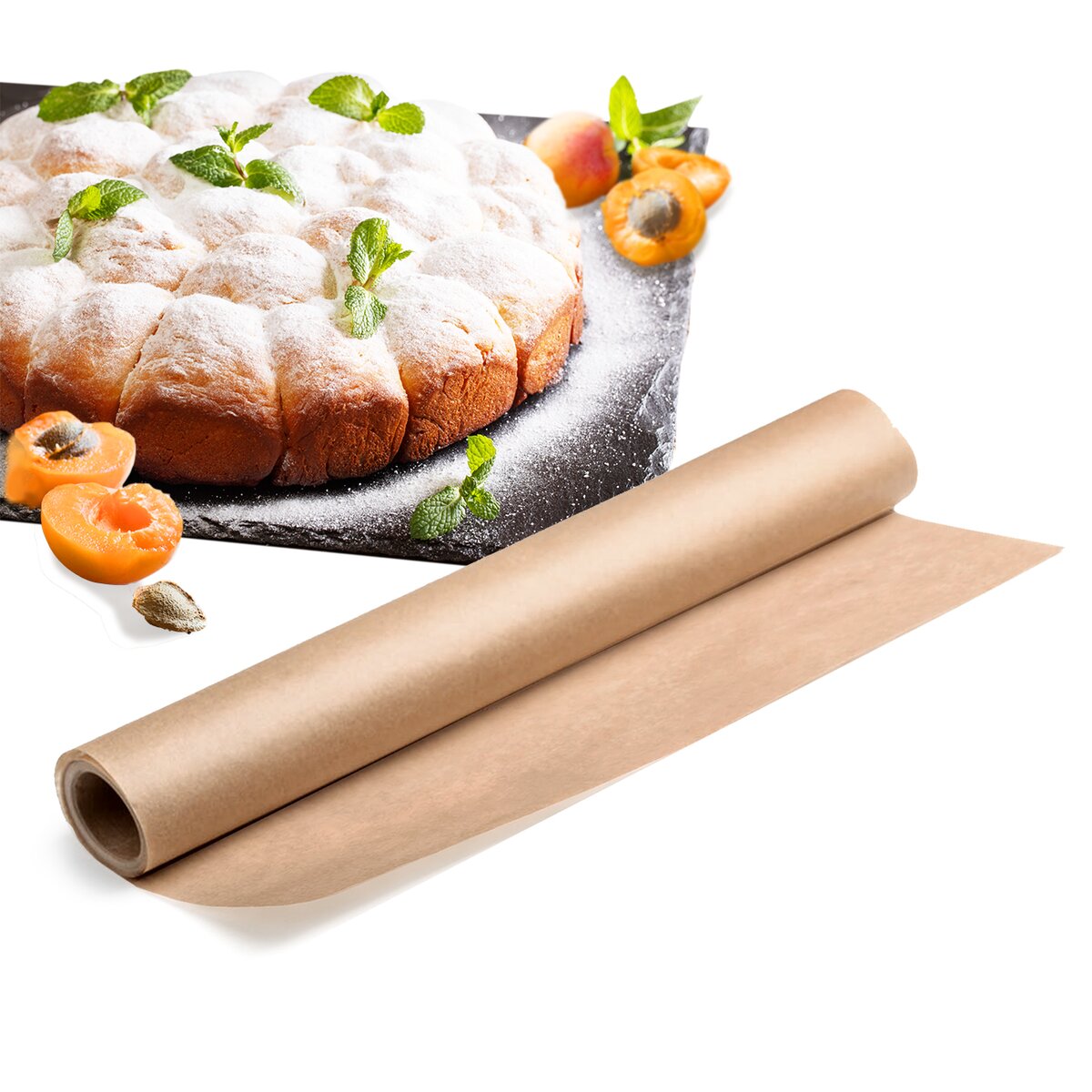 Klasický pečicí papír. Praktická pomůcka pro pečení bez nutnosti vysypávání formy či plechu, která navíc ochrání vaše nádoby před jejich znečištěním. Po dopečení pokrmu stačí papír lehce odejmout z plechu a vyhodit.