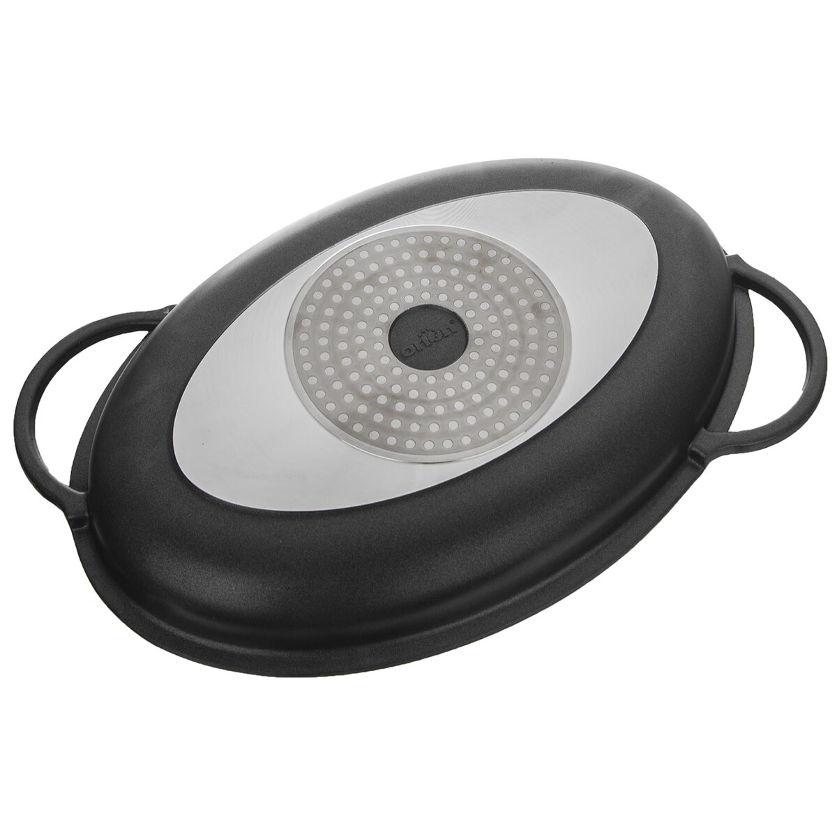 Pekáč o vnitřním rozměru 38x25x5 cm lze použít jako klasický pekáč, díky strukturovanému povrchu připravíte báječné opečené steaky, grilovanou zeleninu nebo žampiony. Skleněná poklice s aroma úchytem umožní jemné dávkování tekutých dochucovadel, olejů, vína a marinád.