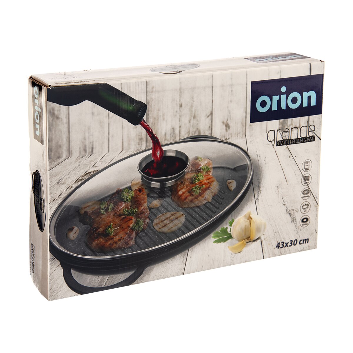 Kód produktu 127030Masivní pekáč GRANDE rozměru 43x30x11,5 cm, s kvalitním nepřilnavým povrchem, strukturovaným dnem a skleněnou poklicí s aroma úchytem pro efektivní vaření na všech typech sporáků i pečení pokrmů v troubě.