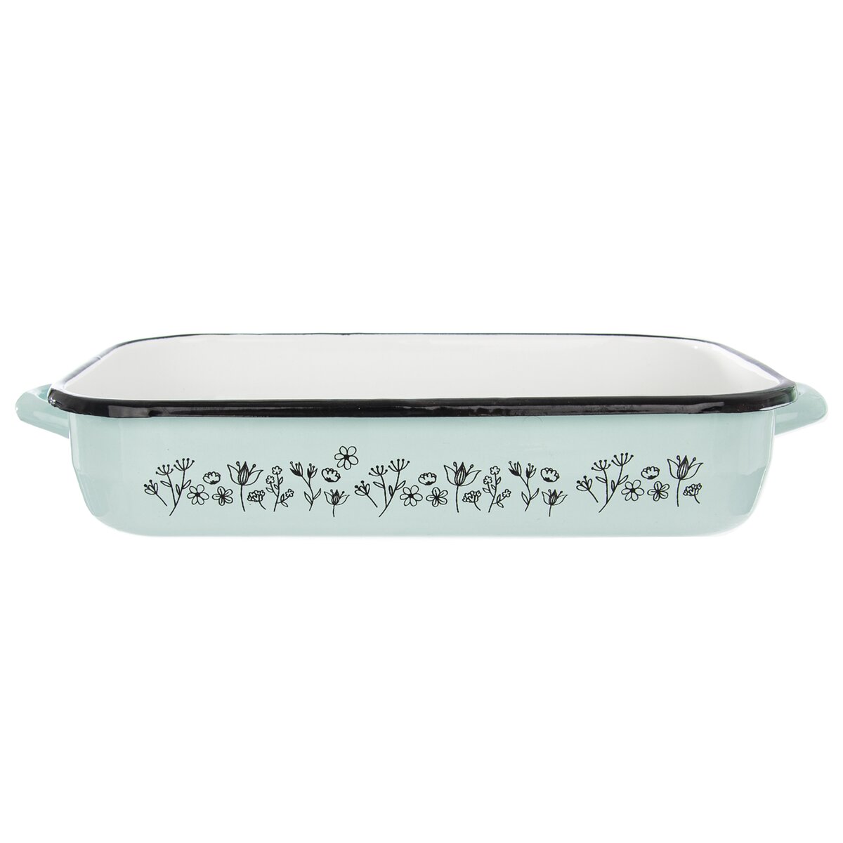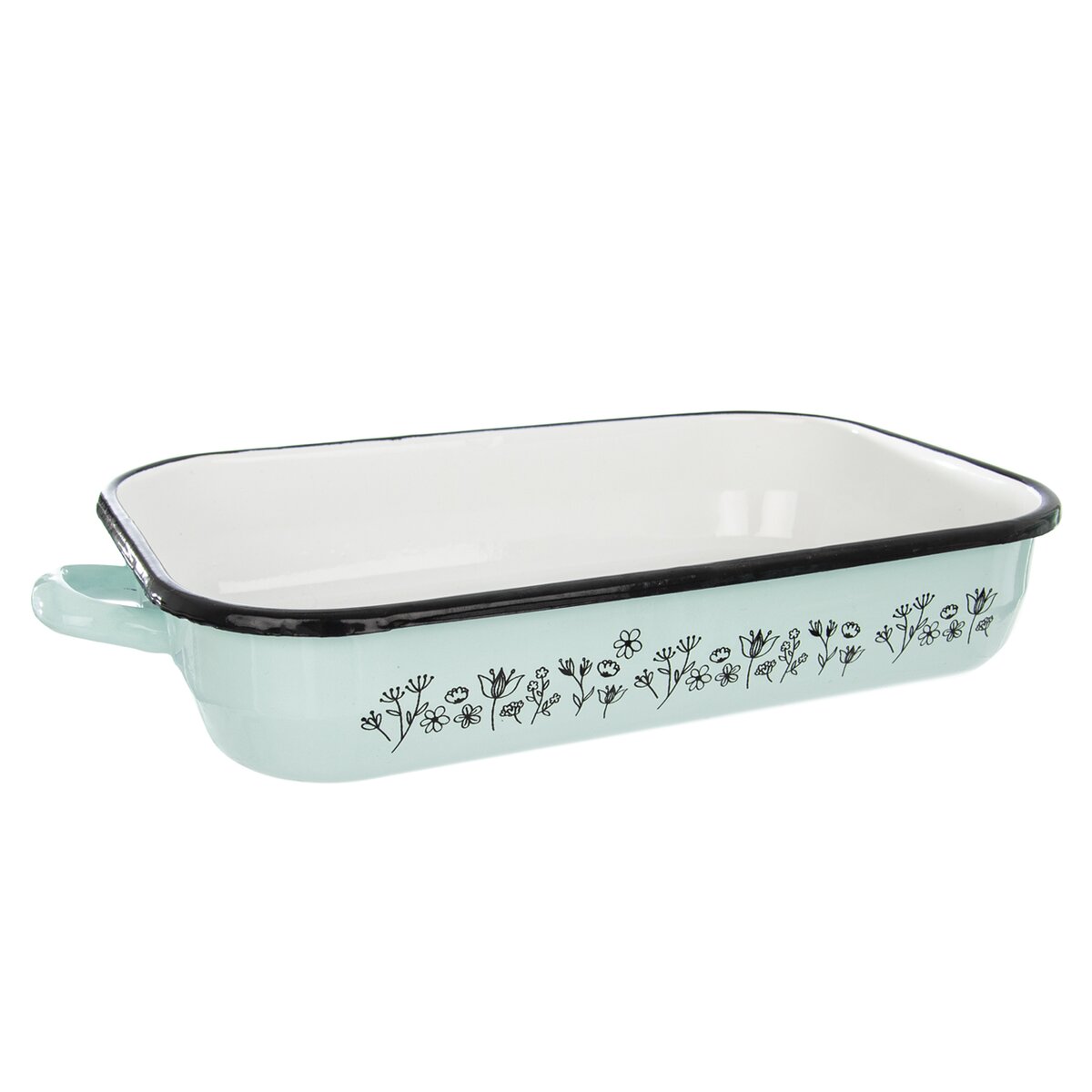 Jednodílný pastelový smaltovaný pekáč s uchy, s něžným dekorem lučních květin, je vhodný na pečení sladkých i slaných dobrot v troubě. Lze jej mýt v myčce nádobí.