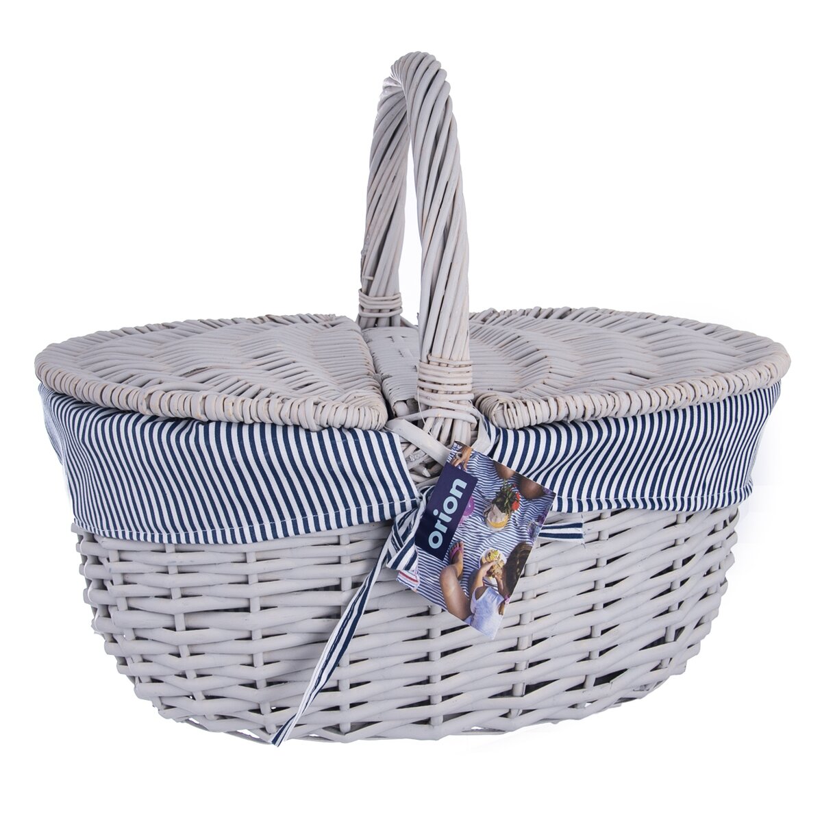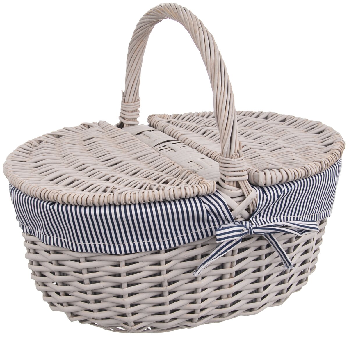 Kód produktu 730523Šedý proutěný piknikový koš o rozměrech 41×31×18/36 cm, který se otevírá z obou stran a má praktické ucho na přenášení.