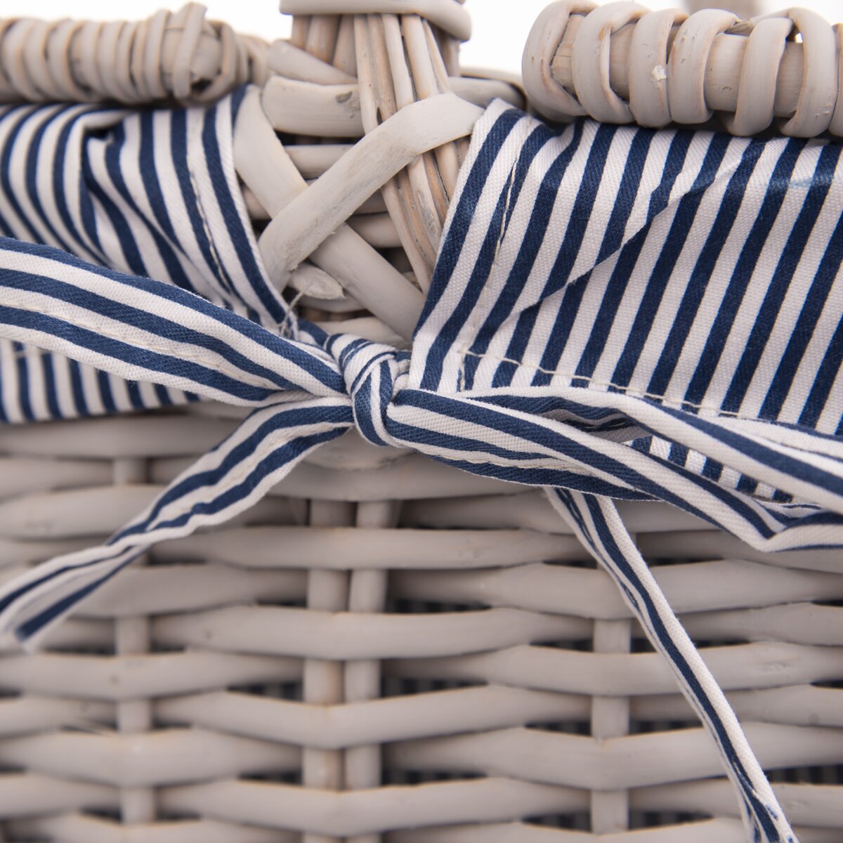 Zajisté oceníte i možnost otevírání z obou stran, což usnadňuje vyndávání připravených pokrmů a ostatních předmětů ven z koše. Uvnitř je opatřený textilií v námořnickém stylu, kterou tvoří z 60 % bavlna a z 40 % polyester. Lze ji také jednoduše vyndat a v případě potřeby vyprat – doporučuje se na 40 °C, nepoužívat bělidla a nesušit v sušičce.