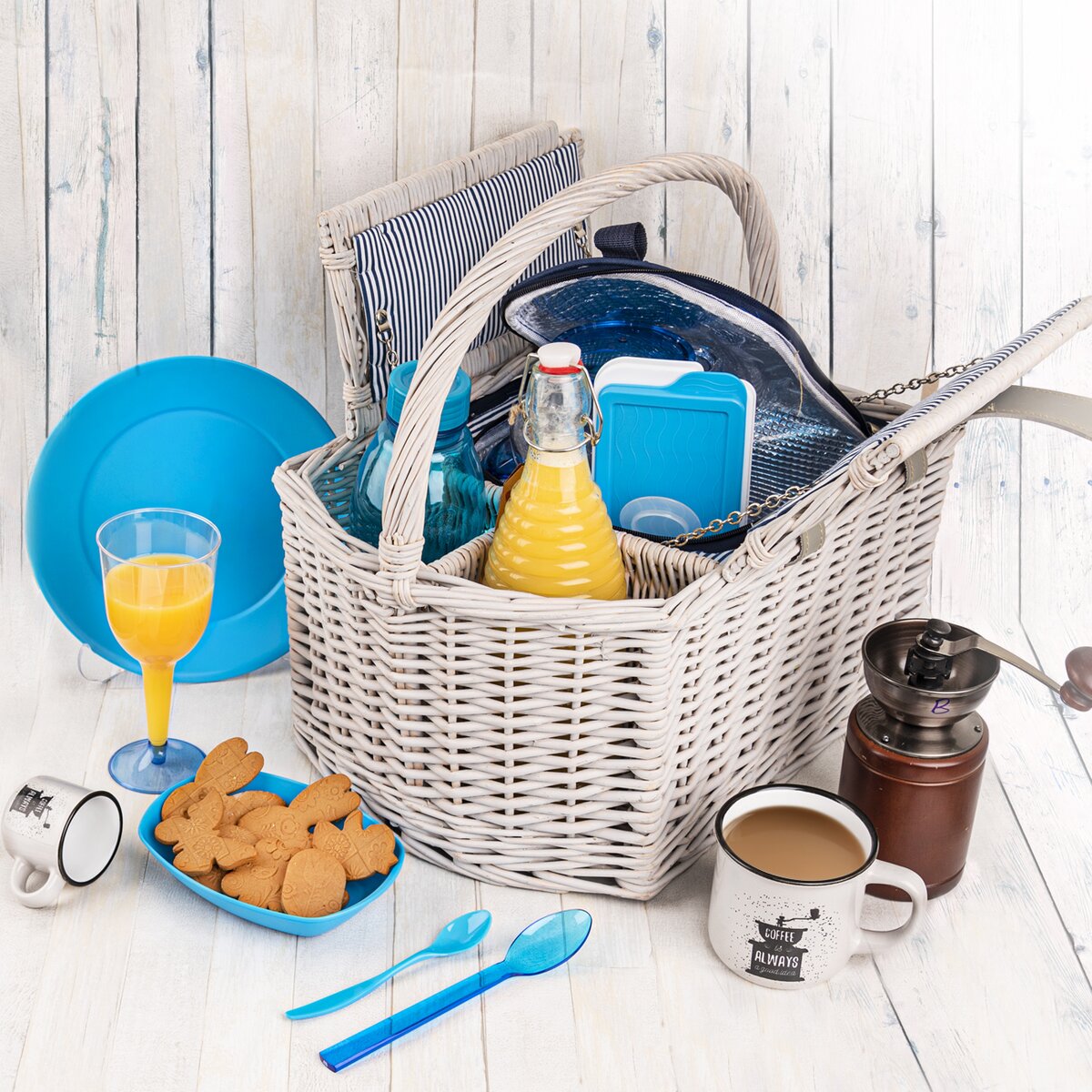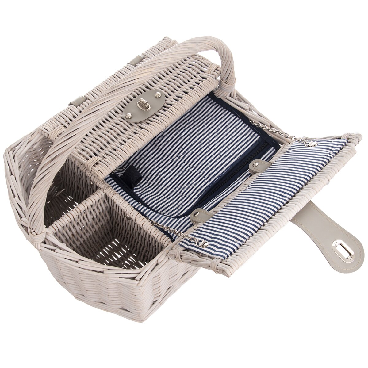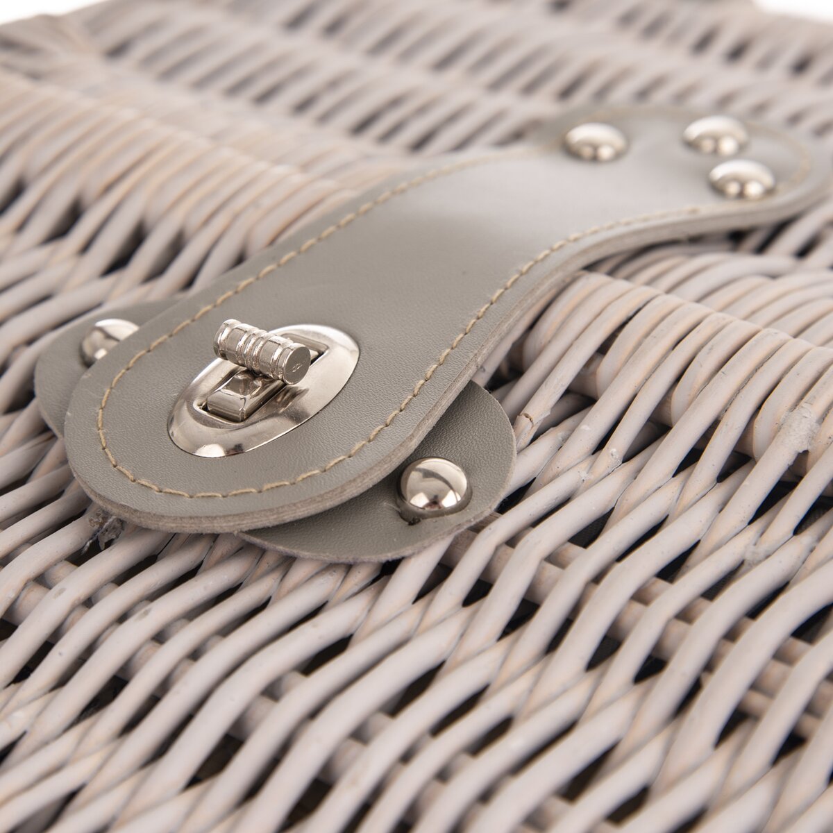 Kód produktu 730519Šedý proutěný piknikový koš o rozměrech 40×29×26/39 cm, který je vybavený termovložkou, praktickým zavíráním a uchem k přenášení. Otevírá se z obou stran.