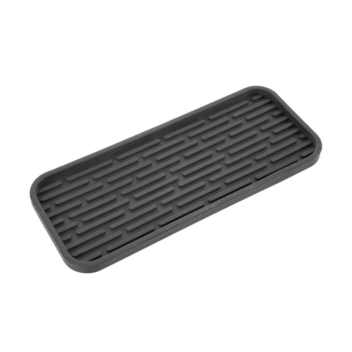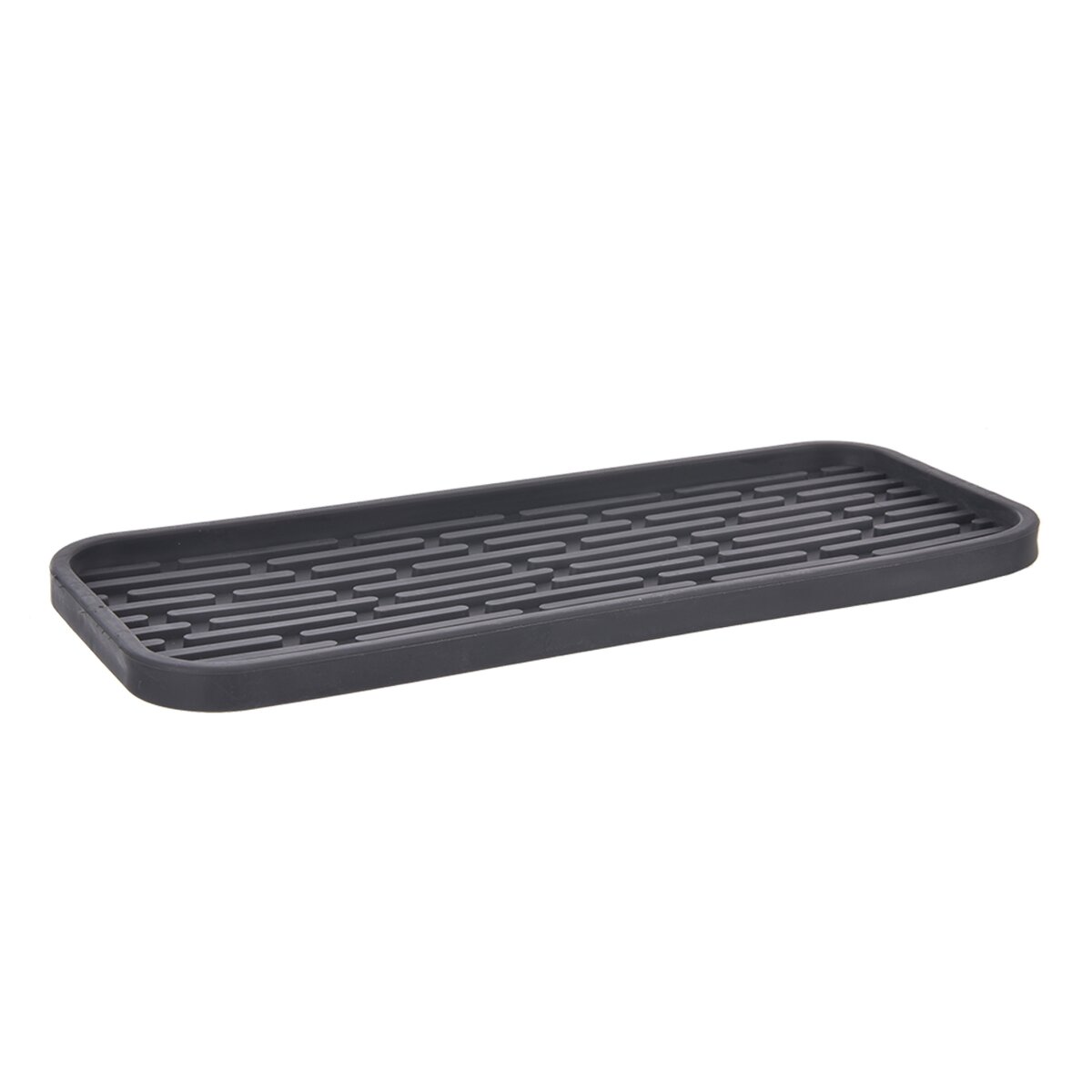 Více informacíŠikovná podložka z pružného plastu TPE poskytuje prostor k odložení houbičky, zátky, čisticích prostředků se saponáty a dalších drobných pomocníků u kuchyňského dřezu. Ochrání dřez nebo umývadlo před ušpiněním a hromaděním vody a následného vzniku map od vodního kamene.