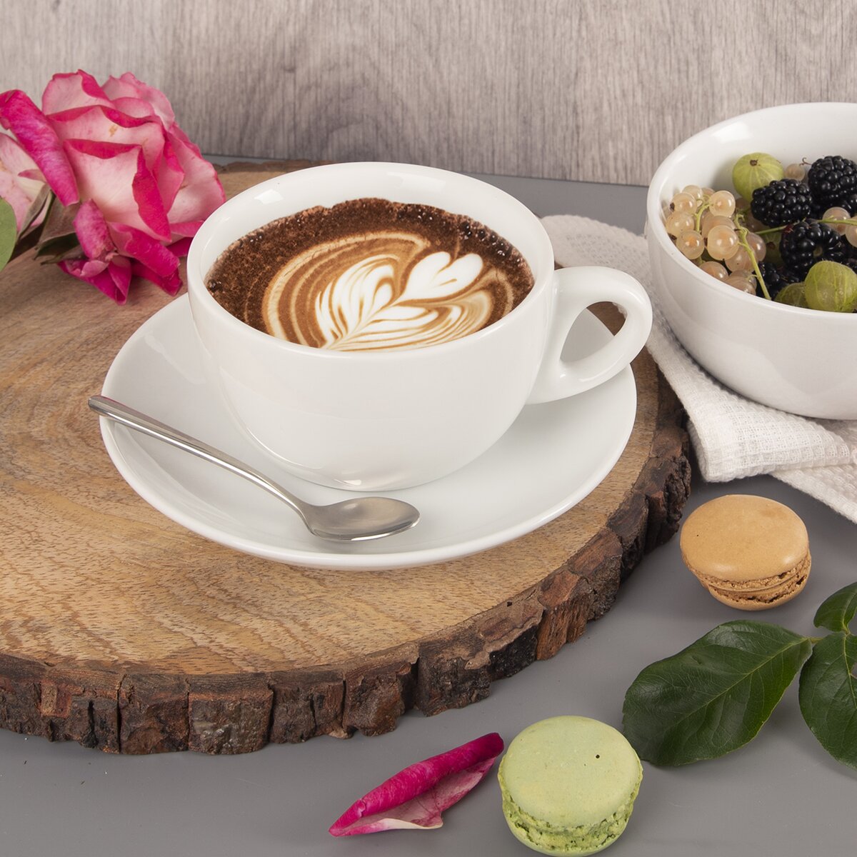 Bílý podšálek je nadčasovým kouskem, který můžete kombinovat s hrnečky na větší cappucino o dolním průměru do 6,3 cm nebo jej použít jako samostatný talířek na zákusek či domácí moučník.