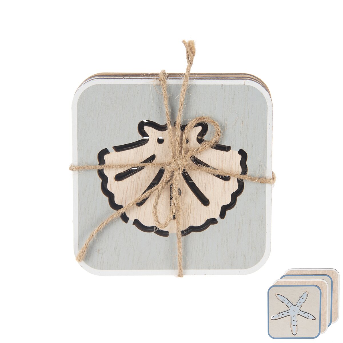 Dřevěné podtácky zamezí poškození stolu horkými hrnky nebo mokrými sklenicem, budou ale i zajímavým doplňkem. Sada 4 kusů podtácků s tématikou moře se výborně hodí k posezení na terase i u bazénu.