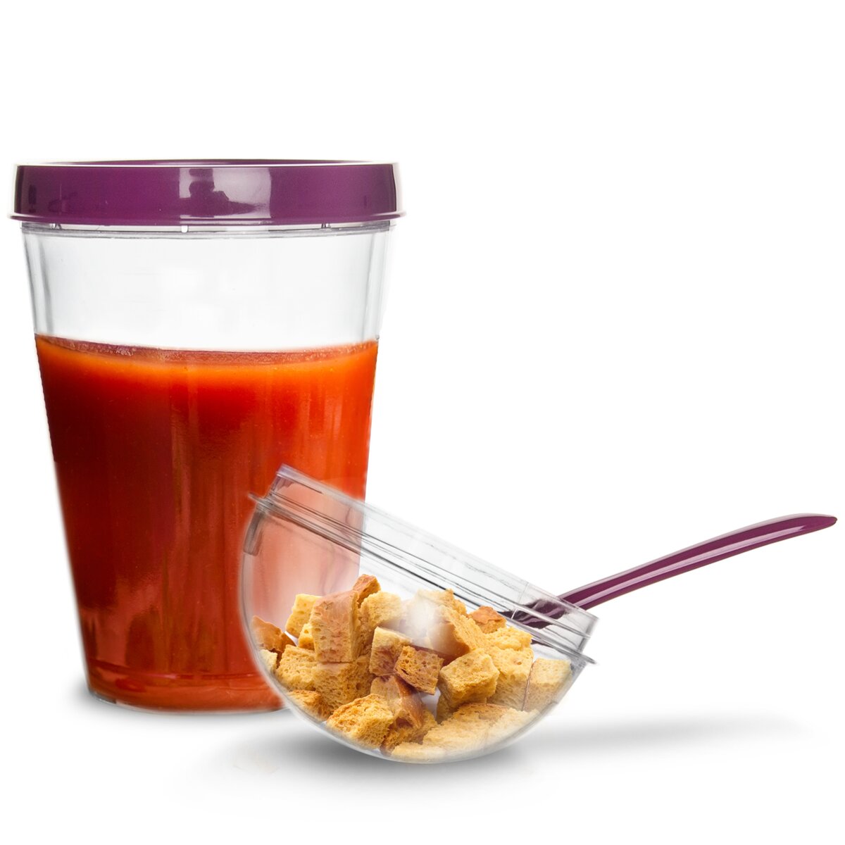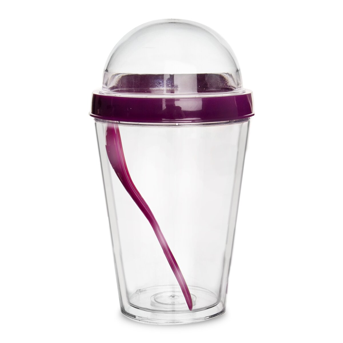 Nestíháte-li snídat nebo si rádi chystáte vlastní svačinu, pořiďte si tento plastový pohár s víčkem a lžičkou.