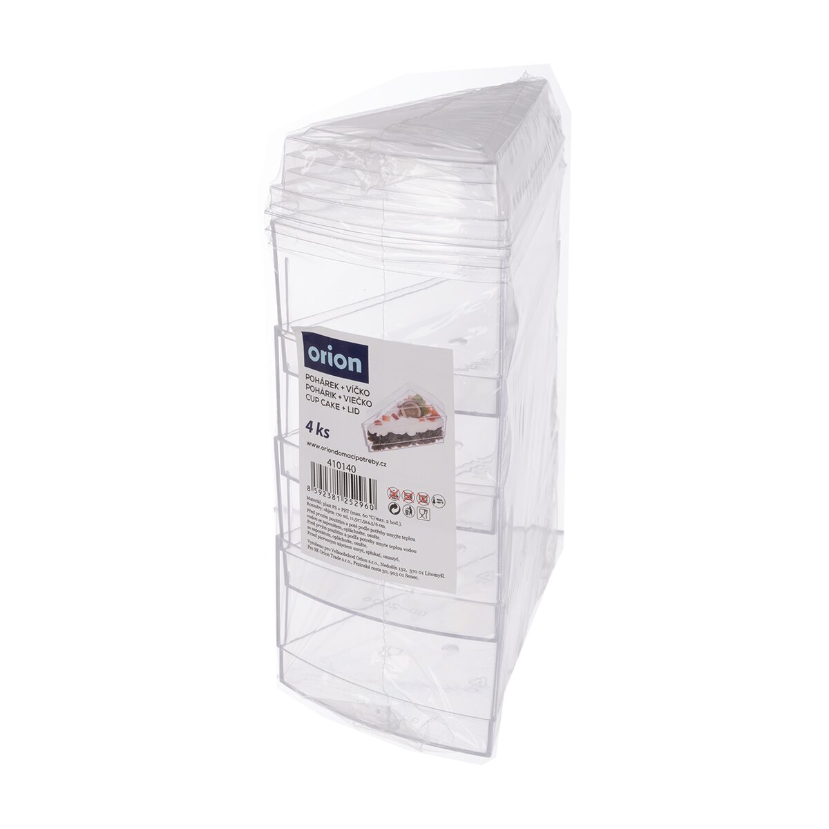Kód produktu 410140Sada 4 ks transparentních pohárků, které vypadají jako kousek dortu, je jako stvořená na chlazené sladké dezerty typu panna cotta, Tiramisu i slané pochoutky a pěny. Každý je doplněn víčkem.