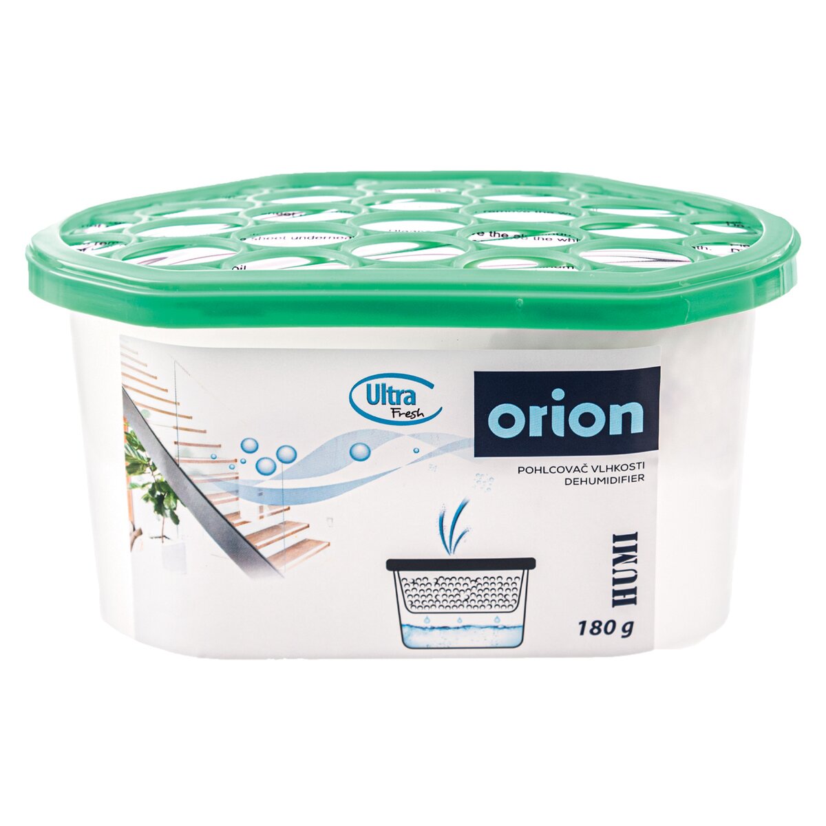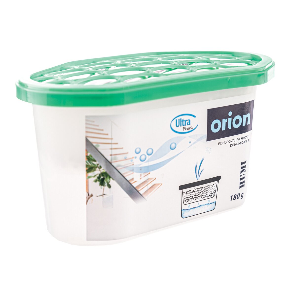 Kód produktu 832335Pohlcovač vlhkosti o objemu nádoby 180 g a rozměrech 15×8,5×8,5 cm.