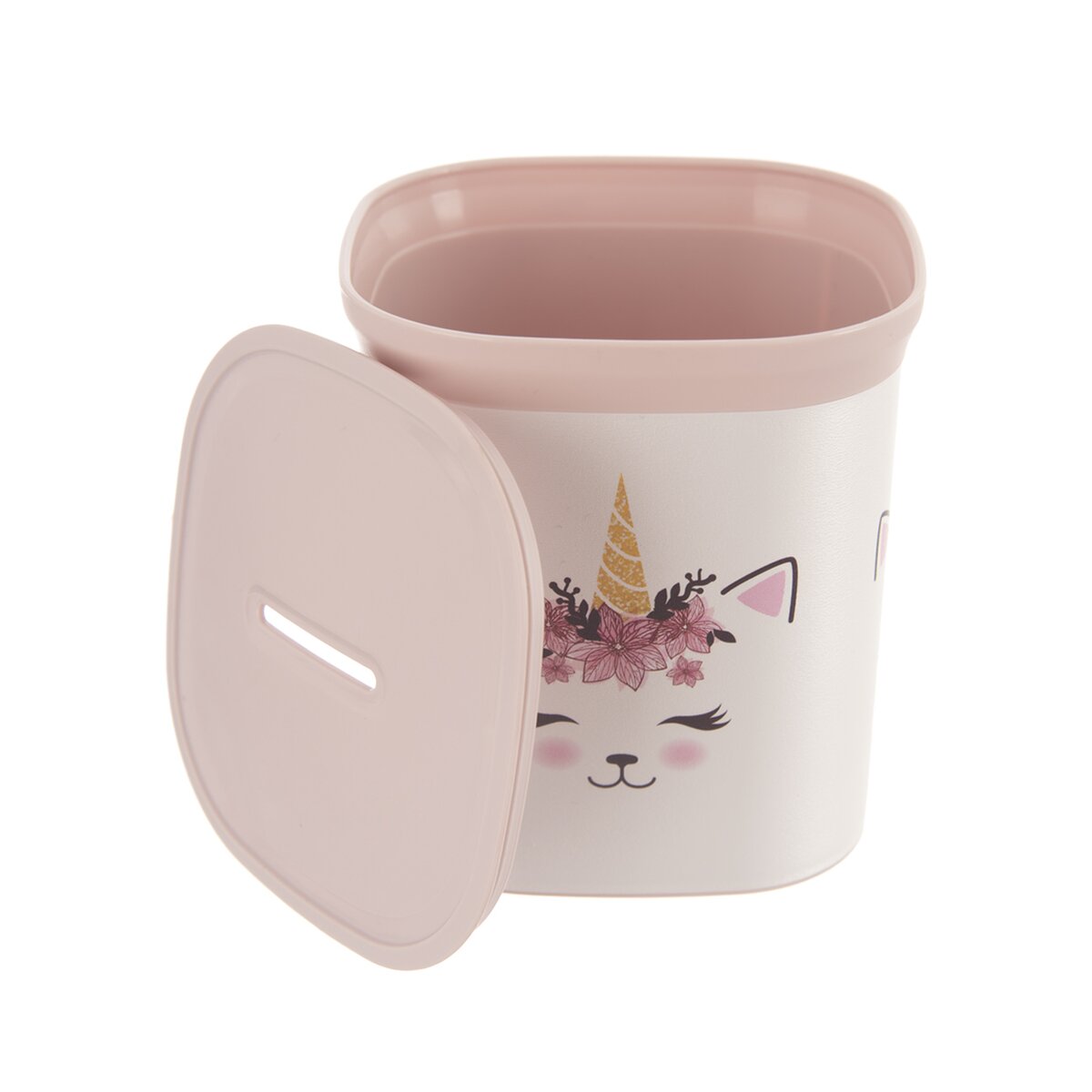 Kód produktu 822901Plastová pokladnička s dekorem jednorožců a odnímatelným víčkem poslouží k ukládání hotovosti.