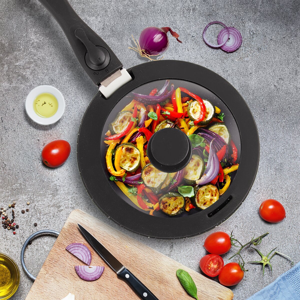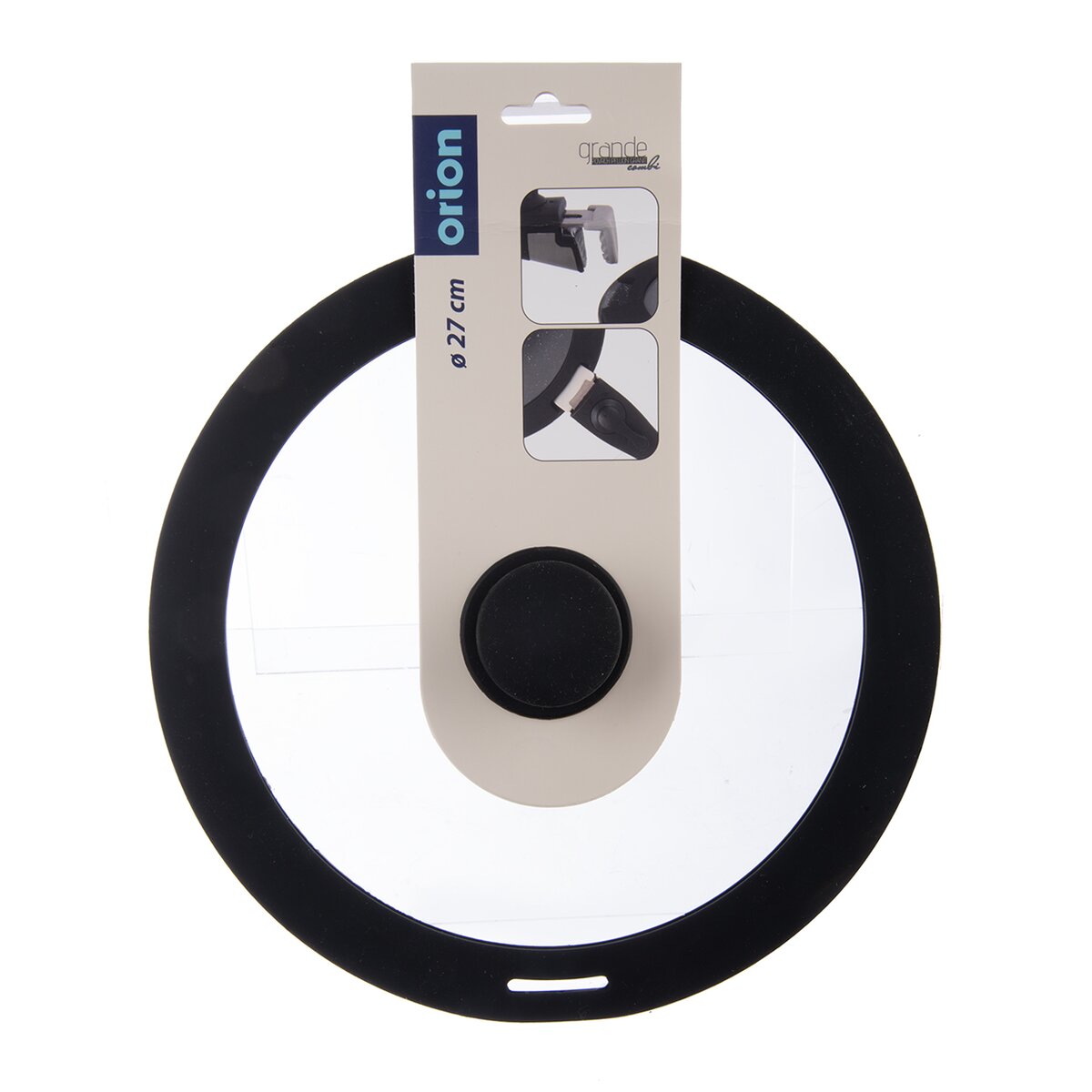 Kód produktu 126337Skleněná poklice se silikonovým lemem a úchytem o celkovém průměru 27 cm je doplněna otvorem pro únik páry a výřezem pro odnímatelnou rukojeť.