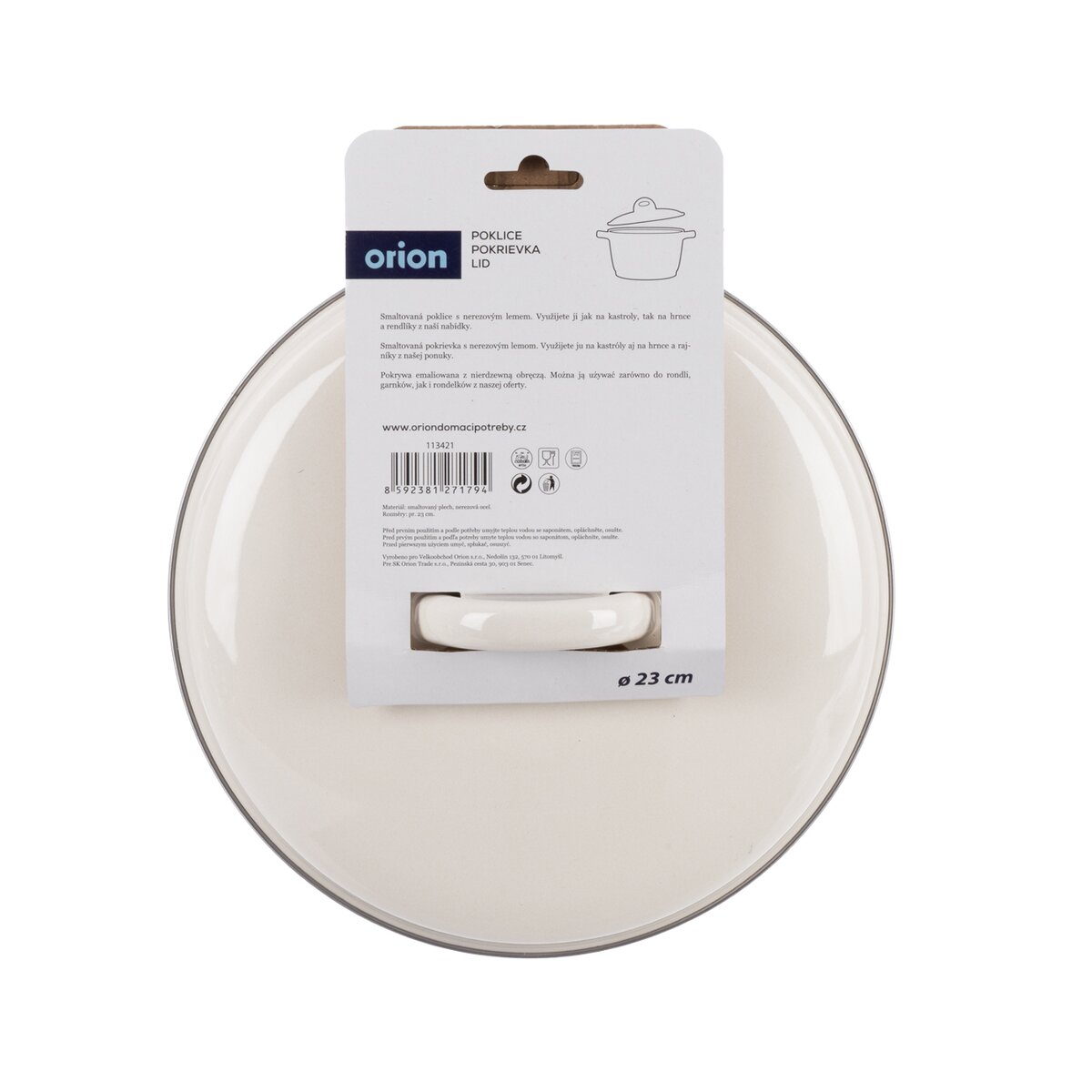 Kód produktu 113421Praktická smaltovaná poklice průměru 23 cm pro ekonomické vaření ve smaltovaných hrncích a kastrolech.