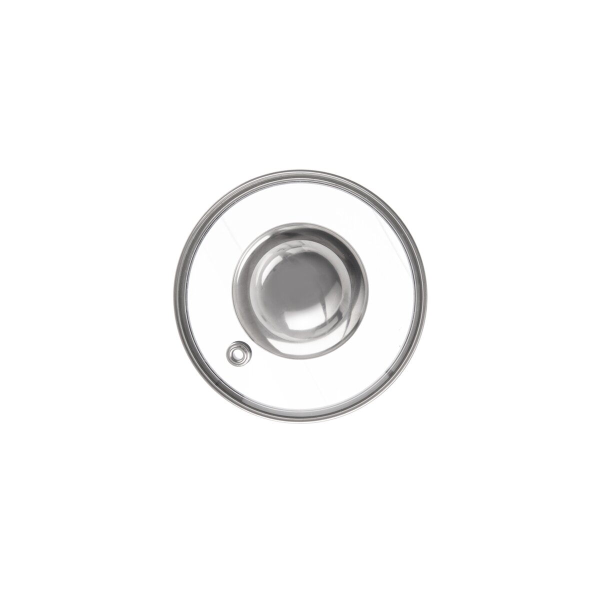 Kód produktu 126340Praktická skleněná poklice průměru 12 cm s nerezovým lemem a úchytem pro ekonomické vaření. Vhodná pro vaření, do trouby i myčky.