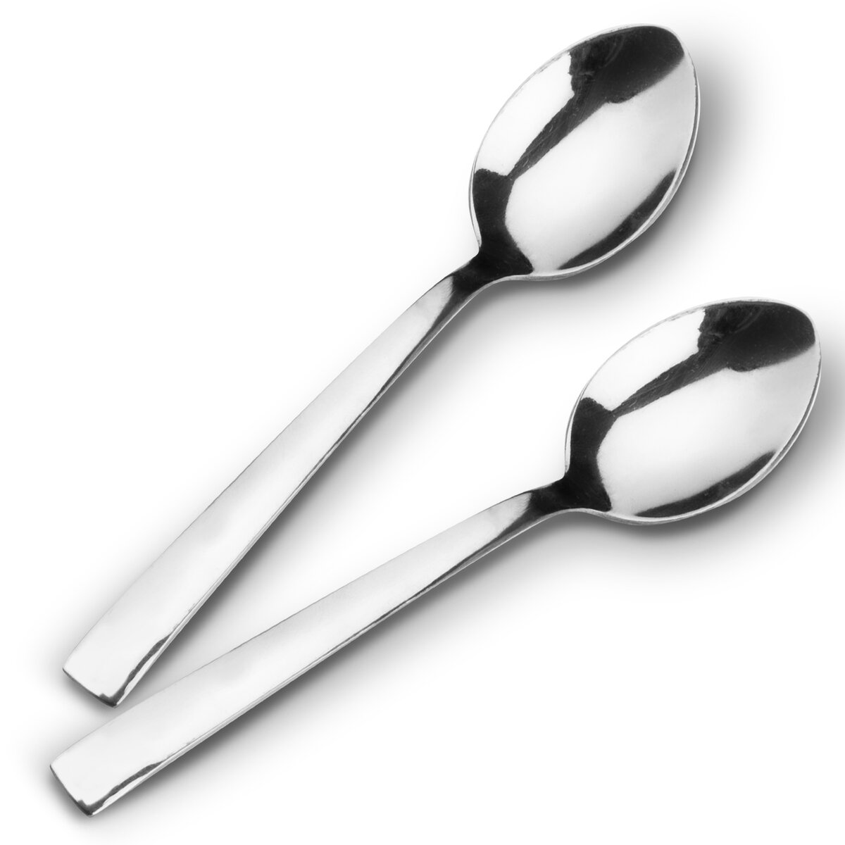 Lesklé nerezové lžíce v jednoduchém, minimalistickém designu s hranatou spodní částí.