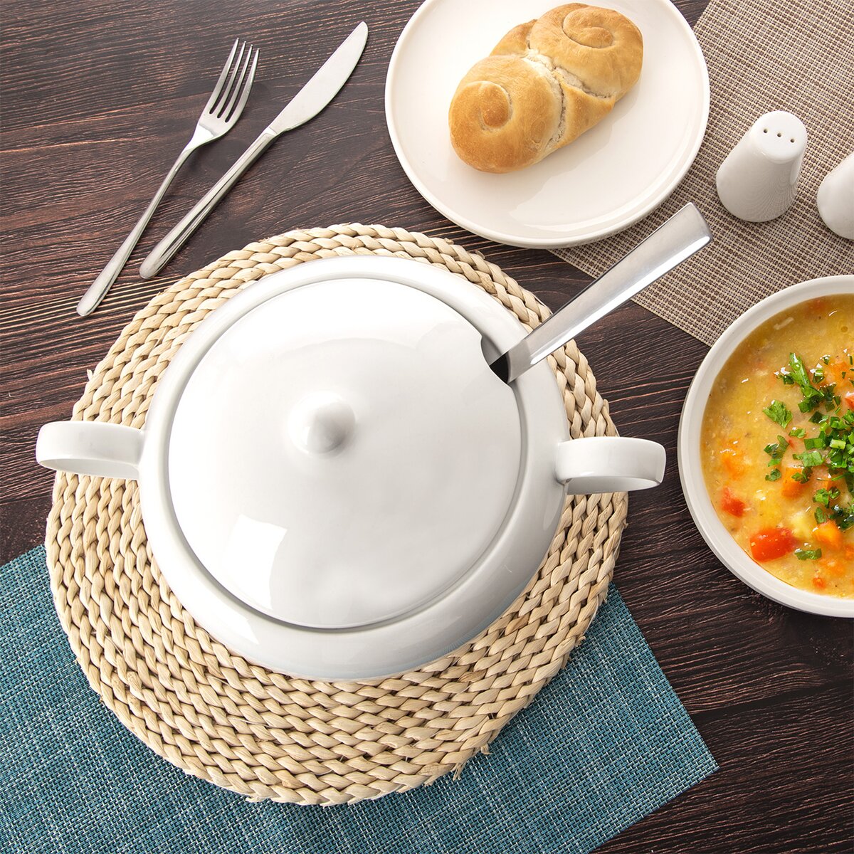 Kód produktu 128606Oblá porcelánová mísa MONA s poklicí je určena na podávání polévky. Má objem 3,2 l a hodí se ke stylovému servírování horké polévky přímo před hosty, především při slavnostních událostech.