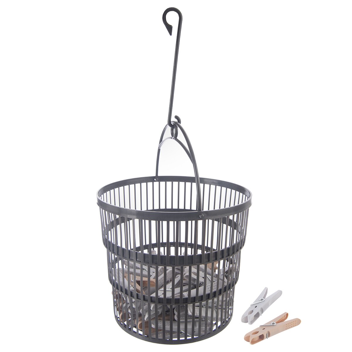 Kód produktu 531157Sada 50 kusů plastových kolíčků na prádlo, uložených v rozkládacím košíku s očkem. Ten lze jednoduše zavěsit za prádelní šňůru či konstrukci sušáku a podle potřeby složit a uklidit.