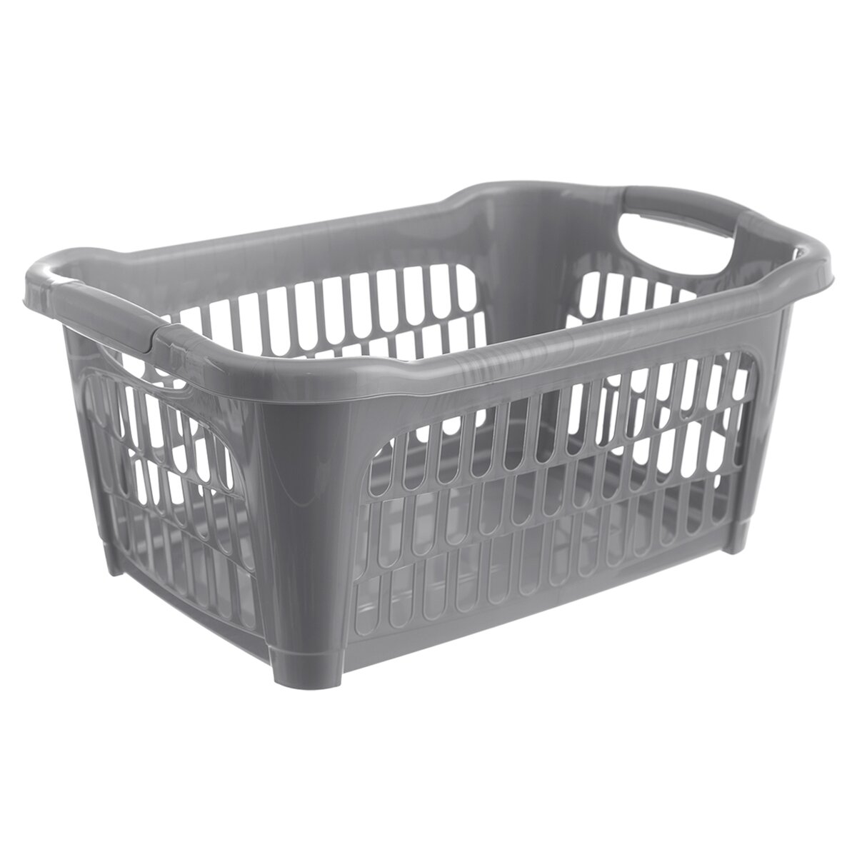 Kód produktu 731502Šedý prádelní koš HOBBY se dvěma uchy a děrovaným povrchem, o velikosti 51x35x23 cm, je vhodný na přenášení čistého vypraného prádla a nejrůznějších drobností v domácnosti.